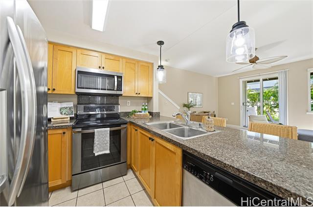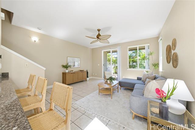 Welcome to Hillside Villas in beautiful Ko Olina! This rare corner end-unit townhome offers ultimate privacy, extra windows for natural light, and the perfect blend of comfort and island living. Featuring 3 bedrooms, 2.5 baths, a 1-car garage plus driveway parking, this features an inviting open layout that flows effortlessly from the living room to the lanai, perfect for enjoying Hawaii’s indoor/outdoor lifestyle. Enjoy thoughtful upgrades throughout, including new vinyl flooring, new Central AC system, newer water heater and appliances. The garage comes equipped with extra storage and an electric car charger, adding convenience and value. Only steps away from the recreation area with a lap pool, a whirlpool, and barbecue grills. Located in the resort community of Ko Olina, you’ll enjoy access to the Ko Olina Beach & Sports Club, fitness classes, four breathtaking lagoons, a marina, world-class dining, golf, and resort amenities — bringing the best of Hawaii’s lifestyle right to your doorstep.