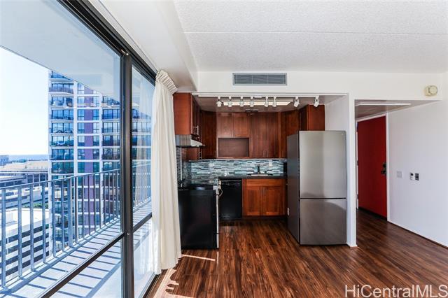 Discover urban living at its finest in this rarely available one-bedroom D unit at Harbor Square Town Tower. Perfectly situated in the heart of Downtown Honolulu, this stylish condo offers comfort, convenience, and modern upgrades. Remodeled kitchen & bathroom with contemporary finishes. Upscale laminate wood flooring throughout, upgraded central air conditioning unit for year-round comfort. Bright corner layout with natural light sparkling new pool and relaxing barbecue area. Community laundry facilities on-site with 24-hour security for peace of mind. On-site parking available for rent. Monthly HOA fee covers Spectrum basic cable TV & internet, water, sewer, and electricity. Enjoy the ultimate convenience with everything just steps away, Aloha Tower & HPU campus Chinatown’s dining & culture, Hospitals & State Capitol Shopping, freeway entrance entertainment, and more. This prime location offers the perfect blend of work, play, and relaxation—ideal for professionals, students, or anyone seeking a vibrant city lifestyle. Opportunities like this don’t come often. Own a piece of Downtown Honolulu today with this stunning condo at Harbor Square. One or more photos have been enhanced.