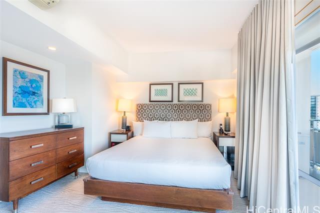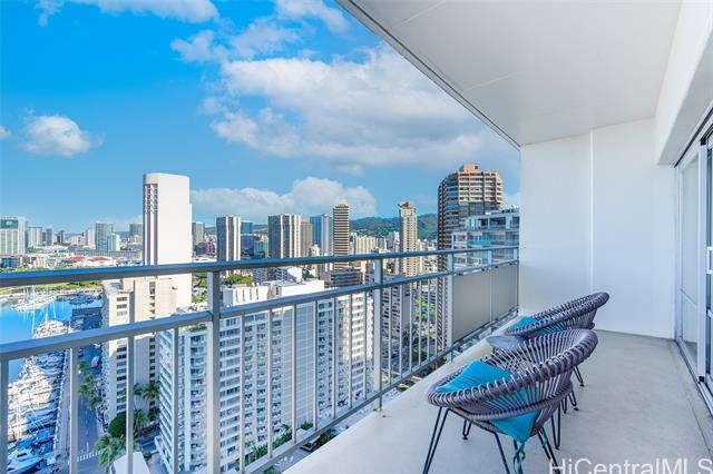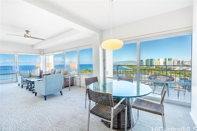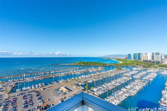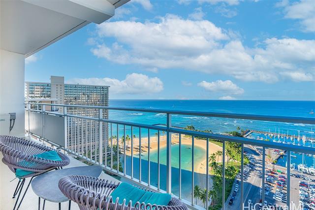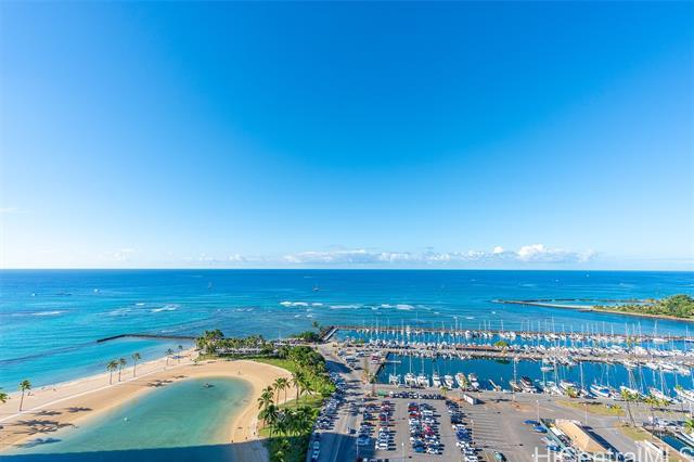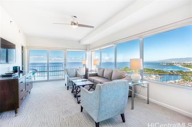 The Ilikai Apartment Building is one of the iconic and legendary hotels in Waikiki. Fully remodeled in 2014, this two bedroom, two bathroom is preferred at the ocean front-corner unit of the building along the Ocean and Marina side. Unit offers a spacious floor plan with large lanai too. Panoramic views of ocean, marina and beautiful sunset. Fully furnished. Currently in the Aqua-Aston Ilikai Hotel Pool Program. This unit is move in ready or ready to be rented out. Enjoy the Waikiki lifestyle!