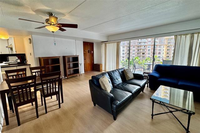 Spacious and airy 2 bedroom/2 bath unit with 2 expansive lanais, and 1 parking space located in the boutique Pomaikai condominium is now available! The interior has been freshly painted and includes new flooring in the living and bedrooms, a new range/oven, dishwasher, and bedroom window AC units. Each floor only has 2 units, and the location can't be beat! Make this your vacation or permanent home and wander along to the expansive beach fronting Hilton Hawaiian Village, shop and dine in Waikiki, head over to Ala Moana beach and world-class Ala Moana Shopping Center, or explore the Ward Center neighborhood! (Note: special assessment balance for elevator loan will be paid off by Seller at Closing).