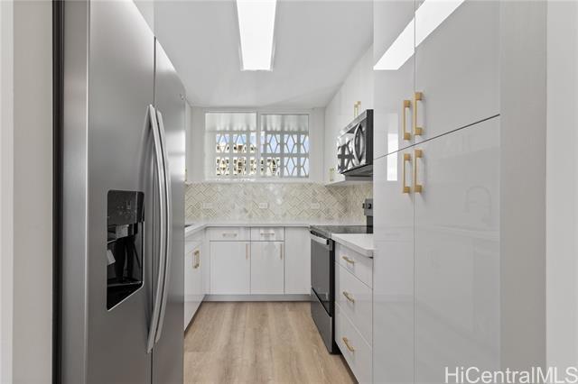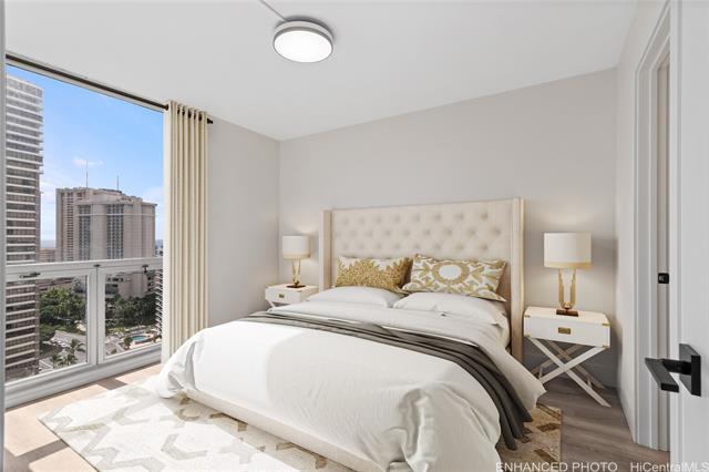 Experience the best of Waikiki living in this fully renovated 2-bed, 2-bath residence in the highly sought-after Waipuna, which showcases ocean and Diamond Head views. No detail was spared in this meticulous, top-to-bottom renovation. The home features split A/C systems in every room. The spacious primary suite impresses with a dual-sink vanity, a large shower with bench seating, an upgraded shower system, and spacious closet with abundant storage. The completely upgraded kitchen stands out with sleek high-gloss acrylic cabinetry, exceptional storage rarely found in comparable units, a multi-drawer pantry, lazy Susan, and pull-out corner cabinet systems. Stainless steel appliances and a modern layout create a clean, streamlined cooking experience. Additional upgrades include a brand-new washer/dryer, designer lighting throughout, new vinyl sliding windows, and more. This one-of-a-kind Waipuna home is a rare offering—modern, thoughtfully upgraded, and truly move-in ready. An opportunity not to be missed!
