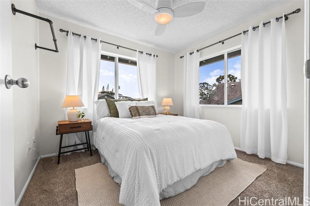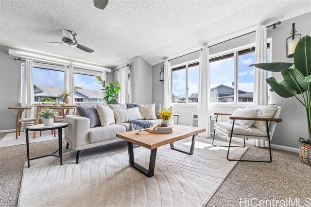 Discover refined Mililani living in this upgraded 3-bedroom, 2-bath townhouse at Hillsdale 3 in sought-after Mililani Mauka. This home features two parking spaces. All original windows were replaced with energy-efficient windows and thoughtfully added attic storage for optimal space and functionality. Conveniently located near freeway access, this home offers both comfort and accessibility. Enjoy exclusive access to Mililani’s many recreation centers, including the newest Rec 7 - showcasing a heated pool, kiddie pool, Internet cafe, free Wi-Fi, BBQ pavilion, and playground, volleyball and basketball courts, Conveniently located near top-rated schools, shopping, dinning, restaurants, and parks. Experience the best of Mililani living in this move-in-ready home. A wonderful opportunity to live, play, and grow in one of Central Oahu’s most loved communities.