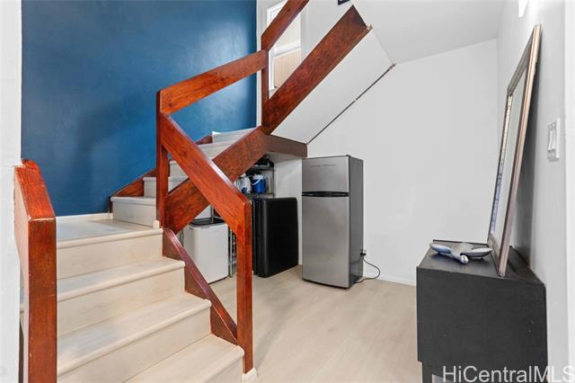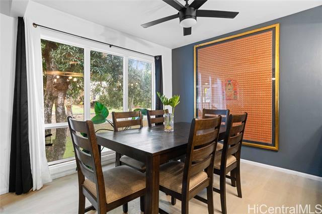 This spacious & thoughtfully designed home offers 2 lanais, perfect for relaxing & taking in the lush tropical surroundings. The interior has been tastefully refreshed w/ an updated kitchen featuring a new range, upgraded bathrooms, & luxury vinyl plank flooring throughout. The flexible floor plan includes 1 bedroom, a full bath, & a laundry room on the first level, ideal for guests or multigenerational living. Upstairs, you’ll find 3 additional bedrooms, 2 full baths, providing comfort & functionality for a variety of living needs. Enjoy refreshing trade winds & scenic mountain views, all in a prime Windward location just minutes from MCBH & the vibrant town of Kailua, w/ easy access to world-class beaches, shopping, dining, & outdoor recreation. Community amenities include a swimming pool, tennis courts, basketball court, & exercise gym. The unit comes w/ 2 tandem parking stalls, additional carport storage, & ample street parking. Mature mango trees just outside the unit enhance the charm & peaceful ambiance of this well-maintained community.