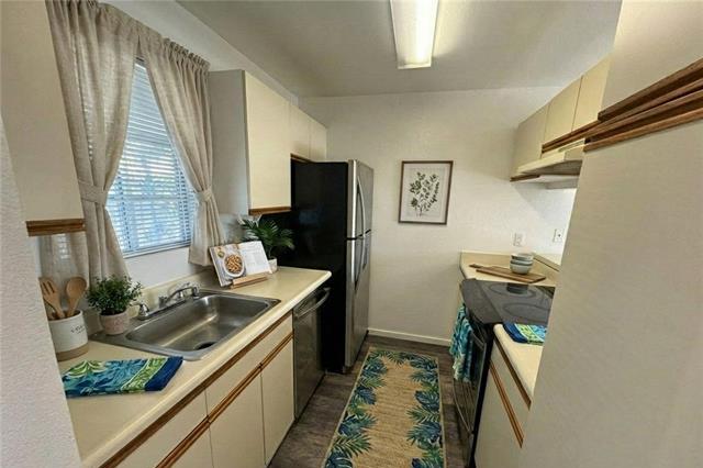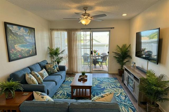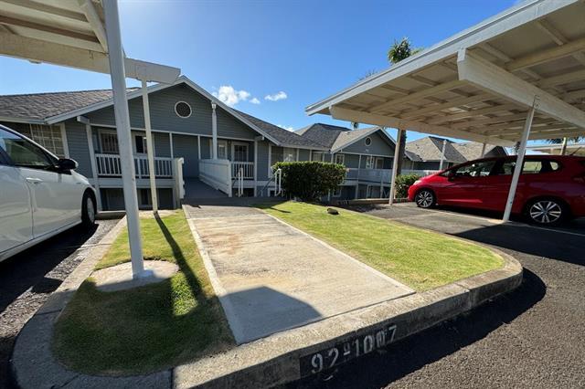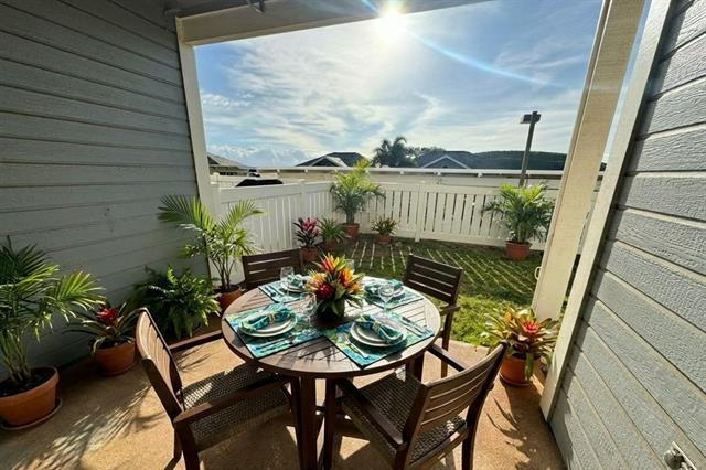 VA assumable rate at 2.25%! Welcome to Makakilo Cliffs, one of the island’s most desirable communities. This beautifully maintained 2-bedroom, 2-bath ground-floor unit offers a peaceful, breezy, and serene island lifestyle with sweeping ocean and mountain views from the private lanai and fenced backyard. The single-level layout transitions seamlessly to an expansive outdoor space—ideal for unwinding, gardening, or entertaining. Additional highlights include two covered parking stalls, plus access to the community BBQ and patio area. Conveniently located near Kapolei Shopping Center, local businesses, eateries, and entertainment. Experience comfort, convenience, and island living at Makakilo Cliffs.