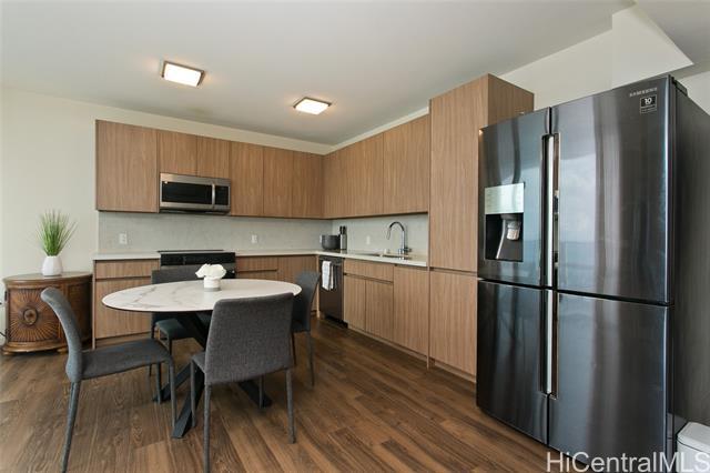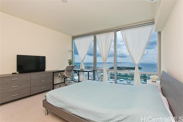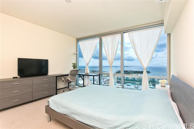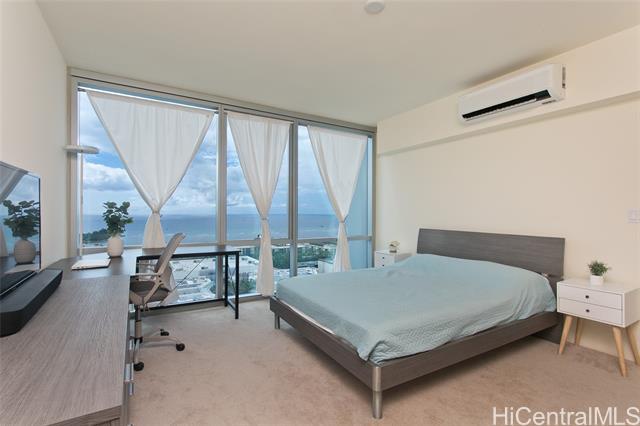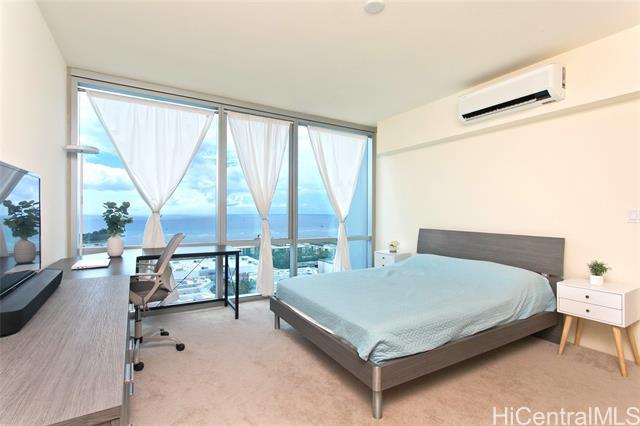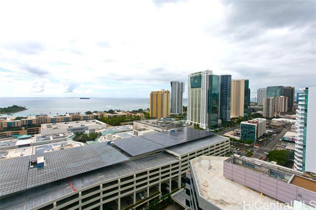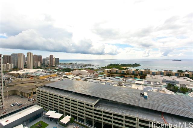 The Central Ala Moana, the name says it all. This building is centrally located at the world-famous Ala Moana Shopping center. Lots to explore and experience. This rare highly sought after three-bedroom, two baths, with two parking, corner unit with a beautiful breathtaking unobstructed ocean view from the living room and the main bedroom. The stunning turquois view will take away the day's stresses and leave you relaxed each time you look out the windows. From the living room lanai, you can feel the ocean breezes as you sit to enjoy the Hawaiian sun. This home features a master en-suite with a walk-in closet. The layout and flow of the unit is efficiently designed with lots of cabinet space. Split ac units in each room, stainless kitchen appliances, stacked washer and dryer. Luxury vinyl flooring in living area, carpet in the bedrooms and tile flooring in the bathrooms. Lots of resort like amenities for you to enjoy such as pool, jacuzzi, BBQ areas, party rooms, theaters, fitness room, playground, and even a dog park, guest parking and more. Take this opportunity to own a piece of paradise.