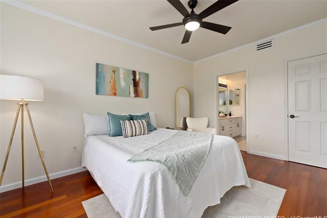 Welcome to this beautifully refreshed, corner-end residence in the highly desirable East Honolulu community of Nanea Kai. This well-positioned home offers breathtaking views of iconic Koko Head with no side neighbor, providing enhanced privacy, abundant natural light, and refreshing trade wind breezes. The spacious 1,461 sq. ft. interior features 3 bedrooms and 2.5 bathrooms, complemented by beautiful hardwood floors, fresh interior paint, new stainless-steel appliances, updated light fixtures, and central air conditioning with Nest controller. Nanea Kai is a special complex in Hawaii Kai with recently reduced maintenance fees. Ideally located within an International Baccalaureate school district and just minutes from Costco, Safeway, local eateries, parks, hiking trails, Hawaii Kai Marina, and nearby beaches. Priced under $1M, this property presents an excellent opportunity to own a home in Hawaii Kai at exceptional value. Some photos have been virtually staged/enhanced.
