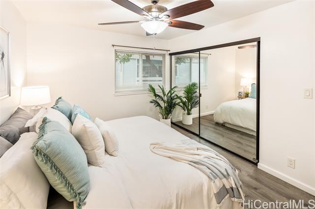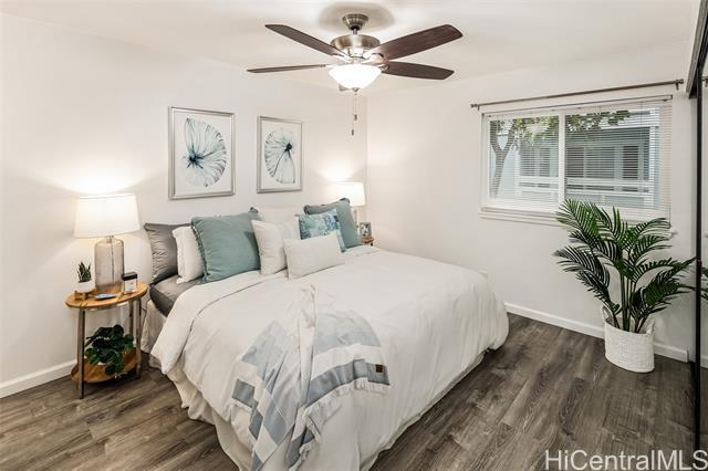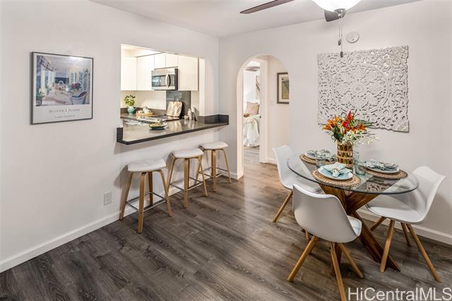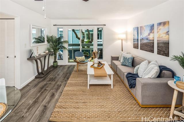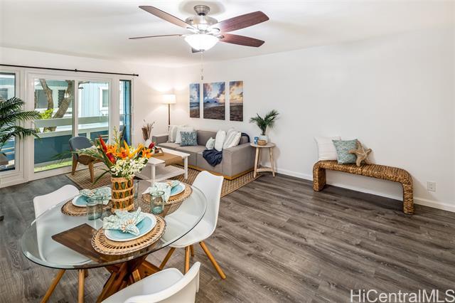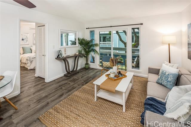 This well situated ground floor unit was totally remodeled in 2019 - kitchen, baths and new luxury vinyl plank flooring throughout. Freshly painted inside in January 2026. Two bedroom two bath unit with one covered parking stall #136 just steps to the unit. Guest parking is also available. The Hokulani is a close proximity to Target, Safeway, Whole Foods, Kailua Beach and many more shops and restaurants. It also includes a Playground for children and a barbeque area for your enjoyment. Very reasonable maintenance fees makes this a win win for Kailua living. Association recently installed new windows and sliding doors into all of the units at no additional costs to the owners. Easy to see - call and go Sentrilock showing. Offers will be presented as received.