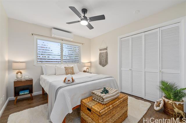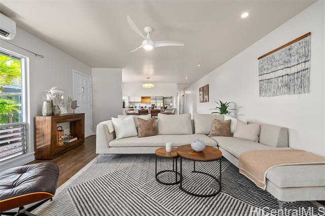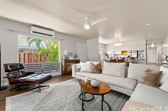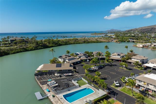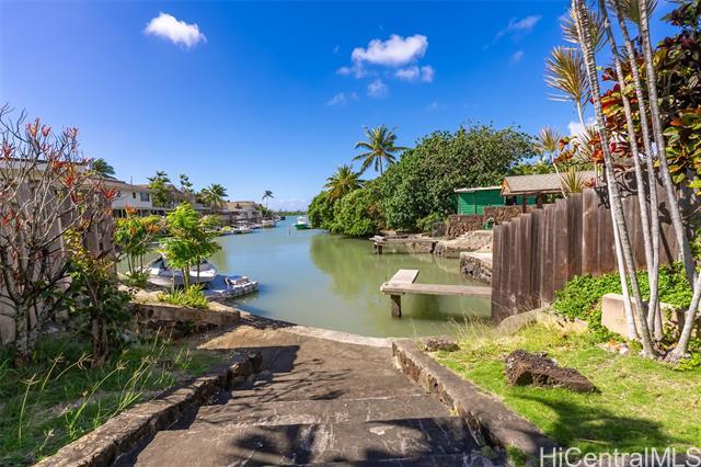 Exceptionally rare in Kuapa Isle — single-level, no-steps 3 bed/2 bath unit with 1,625 sq. ft. This is a very rare unit with a large private yard AND marina access. Living room freshly painted. Very breezy, yet equipped with AC for when it's humid and there's no breeze. Features an enclosed lanai plus covered lanai, open layout ideal for entertaining and gatherings. Perfect for buyers who want the feel of a single-family home without the hassle of maintaining a full house, and ideal for those who enjoy marina activities. Well-maintained community offers pool, clubhouse, on-site manager and ample guest parking. Convenient to Costco, Safeway and nearby restaurants — a must-see!