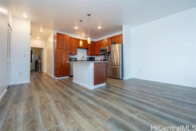 A prime opportunity awaits in Kapolei, Oahu's "second city"! This modern 2-bedroom, 2-bath condo, built in 2017, offers 850 sq ft of comfortable living space and includes 2 parking spots. Enjoy a lifestyle of convenience and leisure with proximity to restaurants, shopping centers, schools, churches, and the new Sky Rail line. Kapolei itself offers vibrant attractions such as the Ko Olina resort area and Wet'n'Wild Hawaii water park, along with access to stunning beaches. The community boasts an impressive array of amenities including BBQ area, club house, refreshing pool, dog park, well-equipped gym/exercise room, meeting room, and relaxing patio/deck. You'll also find a convenient playground/rec area, a resident manager, security guard, storage, and walking/jogging paths. This vibrant location is envisioned as a "live, work, and play" destination, offering a balanced and sustainable urban environment. Don't miss out on this fantastic opportunity!