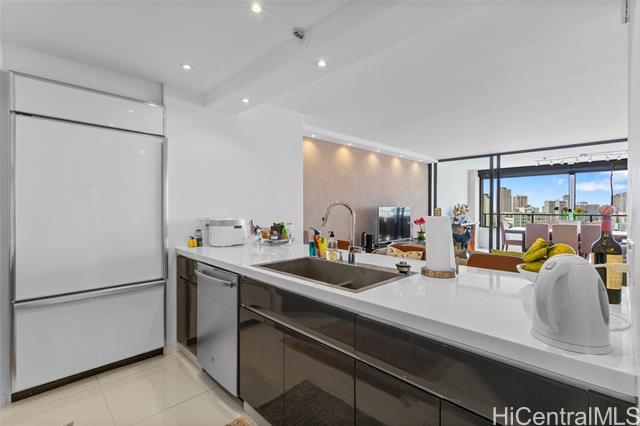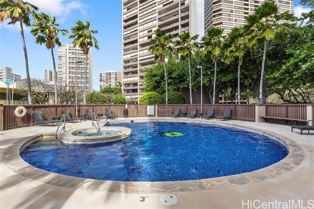 Rarely available, thoughtfully updated 2-bedroom, 2-bath residence featuring an expansive open-air lanai/patio that extends the living space outdoors. The unit has been tastefully refreshed with smooth ceilings, new flooring, fresh interior paint, and fully renovated kitchen and bathrooms. Spacious bedrooms and a full-size washer and dryer add everyday comfort and functionality. Enjoy sweeping ocean and city views. The building has completed and fully paid-for plumbing upgrades, offering added peace of mind. With only four units per floor, residents enjoy enhanced privacy and larger floor plans. Fire sprinkler system is in place.Resort-style amenities include a heated swimming pool, tennis courts, fitness center, sauna, BBQ, Jacuzzi and recreation areas, putting green, EV charging stations, and 24-hour security. Pet-friendly community with central air conditioning and excellent on-site management. Maintenance fees conveniently include electricity, central AC, water, sewer, basic cable, and internet. Truly move-in ready—just bring your suitcases and enjoy island living at its best.