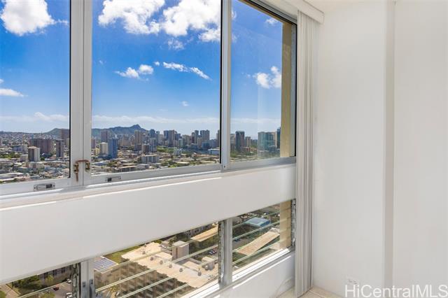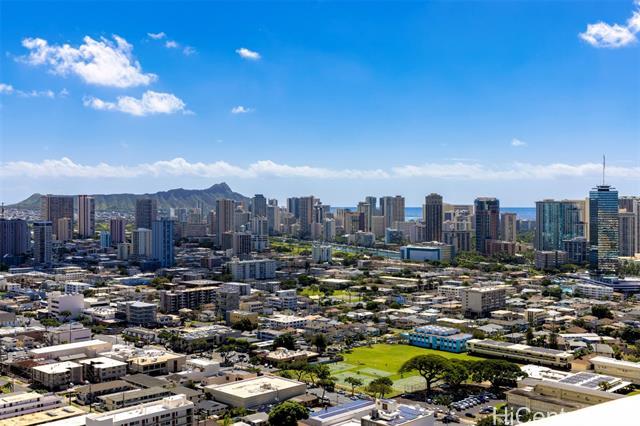 Banyan Tree Plaza is a well-kept condominium in Honolulu's sought-after Punahou neighborhood, near Punahou School, Kapiolani Medical Center, & more. Shrouded in old-growth Banyan trees and island landscaping, this Honolulu residence feels uniquely special upon arrival. This high-floor 1-bedroom, 1-bath residence welcomes you home with bright natural light, and features stunning unobstructed Diamond Head and Pacific Ocean views from the primary living room, bedroom, and lanai spaces. The bedroom includes an extra-large closet space, and the bathroom features an updated vanity and re-tiled shower. Banyan Tree Plaza features multiple outdoor gathering spaces, a large swimming pool, clubroom, barbecue areas, surfboard storage, and more. Unit sale includes rare two side-by-side secured parking stalls nearby to elevator. Don't miss this chance to own a highly-desired 1-bedroom residence near Punahou. Welcome home to Banyan Tree Plaza #3301. Listing includes enhanced, virtually staged photos.