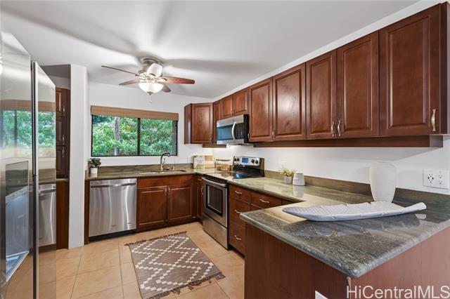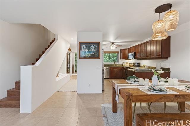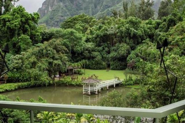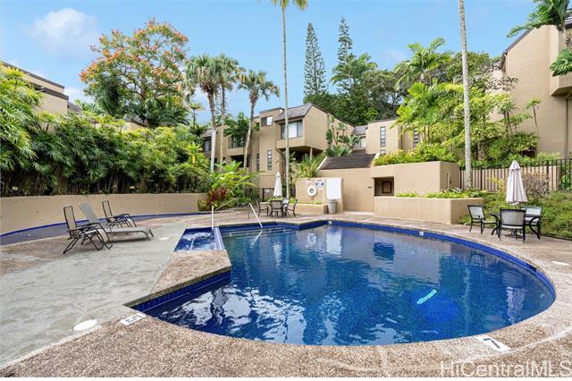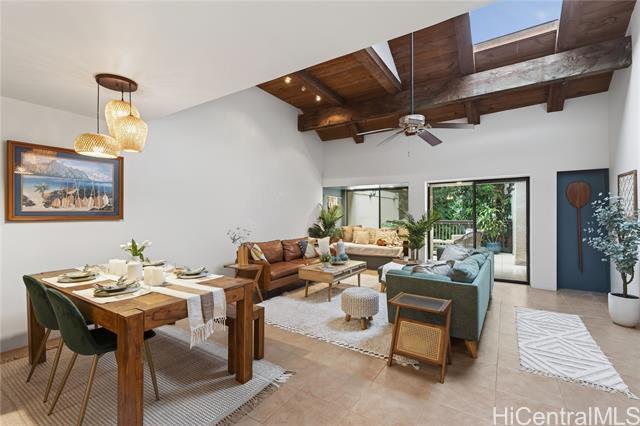 Set in a stunning Kaneohe location beneath the dramatic cliffs of the Ko'olau Range, this beautifully updated townhome offers the perfect blend of natural beauty and everyday convenience. Just minutes from Haleiwa Joe’s, quick access to the H-3 Interstate, nearby military bases, water access, shopping, and a wide variety of local restaurants, the location truly checks every box—including easy trips to Target and the mall. The complex itself feels like a private garden retreat, with lush, well-maintained landscaping, peaceful walking paths, and striking rainbow eucalyptus trees woven throughout the grounds. Right out front of the unit, enjoy resort-style amenities including a generously sized pool, jacuzzi, and sauna—perfect for unwinding at the end of the day. Inside, the home has been freshly repainted and thoughtfully upgraded to create a comfortable, well-appointed floor plan with room to truly spread out. The spacious interior flows seamlessly to a LARGE lanai, ideal for entertaining or simply relaxing while taking in the surrounding greenery. Included are two reserved parking stalls, a covered storage closet, and guest parking adding everyday ease. Vacant and easy to show!