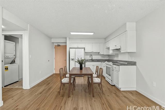 Welcome to Residence #2224 at 801 South Street — a beautifully refreshed 22nd-floor 2-bedroom, 1.5-bath home in the heart of Kaka‘ako. This move-in ready unit features brand-new flooring, fresh interior paint, and newly installed blinds, creating a bright and modern living environment from the moment you step inside. Enjoy city, mountain, and ocean views from your elevated vantage point, with abundant natural light flowing throughout the functional layout. The open-concept living and dining area seamlessly connects to the kitchen, offering both comfort and practicality for everyday living. 801 South is a well-managed, secure high-rise known for its low maintenance fees and unbeatable urban convenience. Amenities include 24-hour security, EV charging stations, guest parking and a spacious lobby/lounge area. Ideally located just minutes from Ward Village, SALT at Kaka‘ako, Ala Moana, Downtown Honolulu, and major freeway access — this residence offers the perfect balance of lifestyle, value, and location. Ideal as a primary residence or a great investment property in one of Honolulu’s most convenient locations. Don’t miss this opportunity.