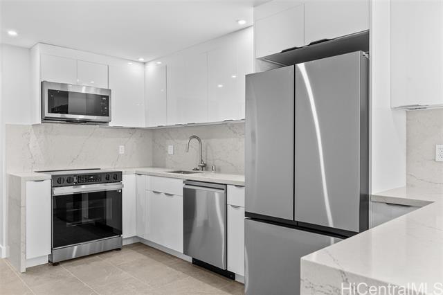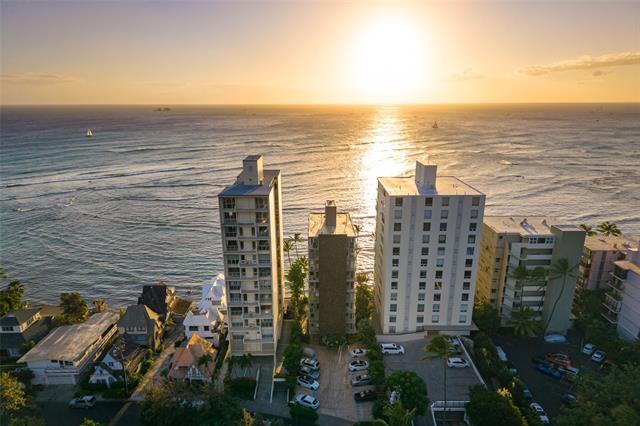Prestigious Gold Coast Oceanfront end unit with stunning endless ocean views. Only listing at Oceanside Manor. Completely remodeled in 2025. Oceanfront at its best! As you enter you will feel the peacefulness and tranquility of the ocean. Wake up to the magnificent Ocean & Diamond Head views. Listen to the sounds of the ocean - Hawaii living at its best. Enjoy the sunsets every evening. This oceanfront retreat with floor-to-ceiling pocketing sliding doors awaits you. Oceanside Manor has only 2 units per level. Updates: Drop ceiling & recessed lighting, New Italian color-body large format porcelain tiled floors, complete electrical rework to include wiring and fully updated/replaced panel, New ceiling fan and light fixtures, All new appliances and finishes, New Ductless washer/dryer combo side access unit, New Split AC system, Relocated New Custom water heater cabinet with fully removal access for maintenance (Red Balau–Luxury Tropical Hardwood) and so much more! A must see. Located close to the Elks's Club, Outrigger Canoe Club, Michel's famous beachside restaurant, Kapiolani Park & more. Located in the quiet section of Kalakaua Ave. This building is fully insured. Easy to see.