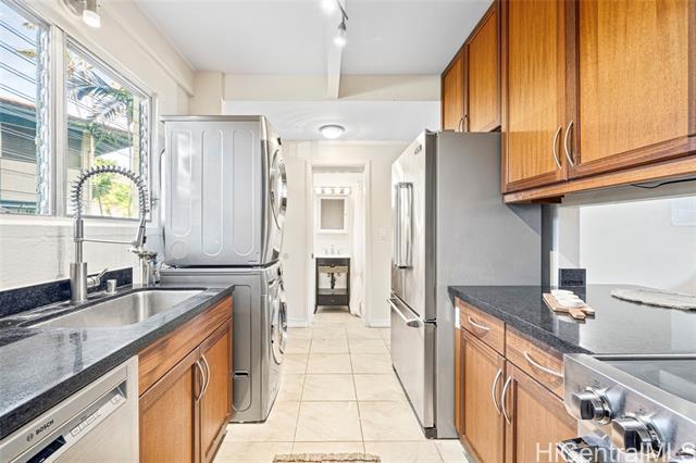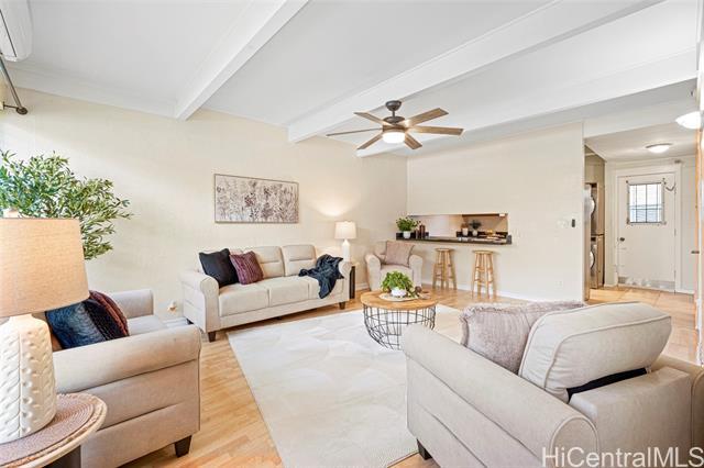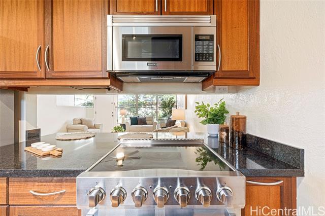 Prime Kahala location! This move-in-ready 2-bedroom, 2-bath townhouse offers over 1,000 sq. ft. of comfortable living space, blending charm with everyday convenience. The remodeled kitchen features high-end Viking and Bosch appliances, new full-size washer/dryer, while a newly installed split A/C system—selectively approved by the HOA—adds modern comfort. The home also includes updated bathrooms, flooring and fresh interior paint throughout. An added bonus is the large attic with pull-down stairs, providing excellent additional storage. This preferred unit is conveniently located near the assigned parking stall and offers no stairs, enhancing ease of access. The well-managed community features a refreshing pool and guest parking. Located in one of Hawaii’s most desirable neighborhoods, enjoy quick access to Kahala Mall, Ku‘ono Marketplace, boutique shops, restaurants, Whole Foods, schools, beaches, parks, and the vibrant Kaimuki town—plus easy freeway and bus access. The “#34” property is located at 4185 Keanu Street, Unit 2, off of parking LOT B.