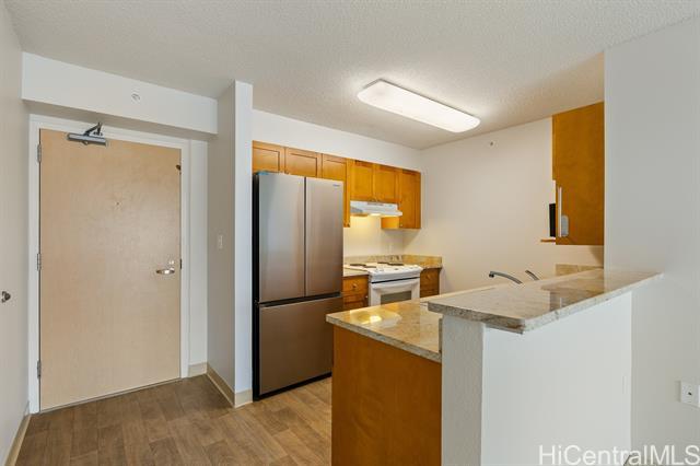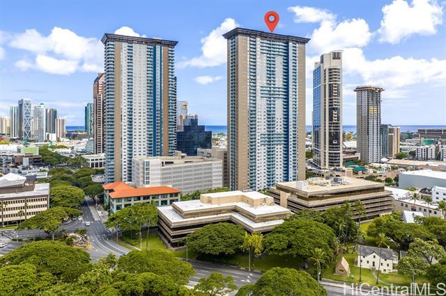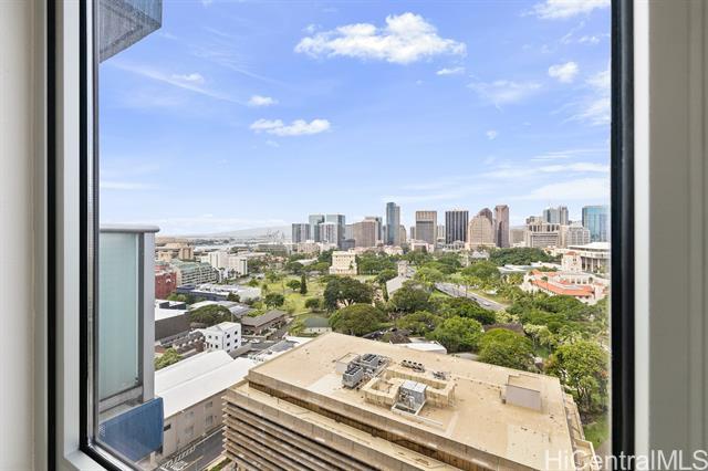 Rarely available corner-end unit on a desirable mid-level high floor featuring 2 bedrooms, 2 full bathrooms, 2 parking, LOW MAINTENANCE FEE!!! This thoughtfully designed home captures beautiful mountain, city, ocean & unobstructed Downtown Honolulu views, all enjoyed from your private lanai. Upgraded kitchen features Wood Door Cabinetry, French Gold Countertops, Brand New Refrigerator. Additional highlights: an in-unit washer & dryer, 3 split A/C for. This secured, well-managed building offers 24-hour security, an on-site resident manager, guest parking, EV charging, a spacious lobby with meeting & recreation areas. Pet friendly. Ideally located on the border of Kaka'ako & Downtown Honolulu, just minutes from SALT, Ward Village, Ala Moana, dining, shopping, beaches, entertainment-placing you in the center of Honolulu’s most vibrant & convenient neighborhoods. Whether you are seeking a comfortable primary residence or a strong investment opportunity, this home combines location, views, convenience in one of Honolulu’s most dynamic & growing communities. Opportunities to own a corner-end unit with these features & value in this location are limited—this is one you won’t want to miss.