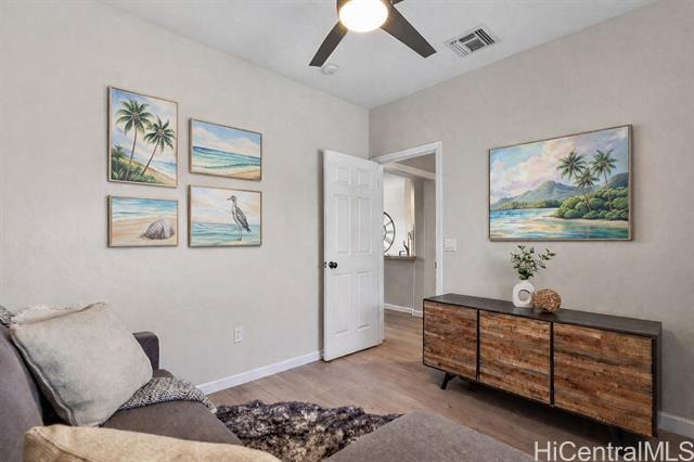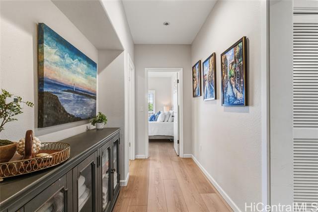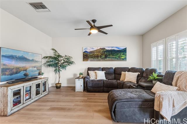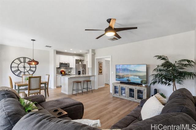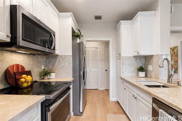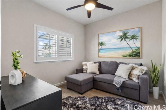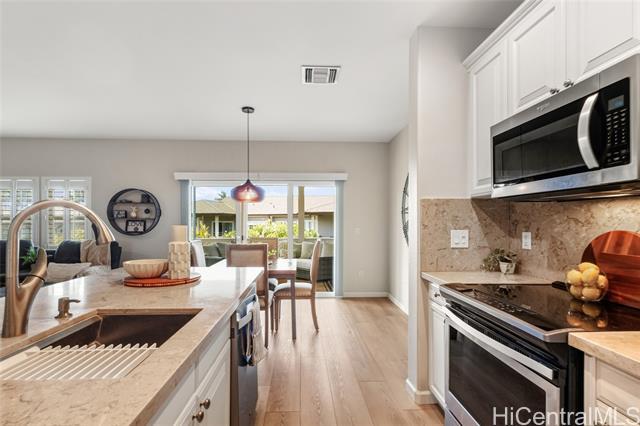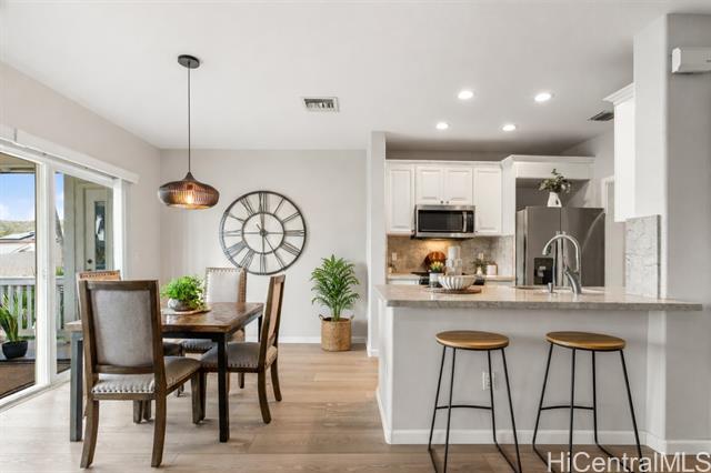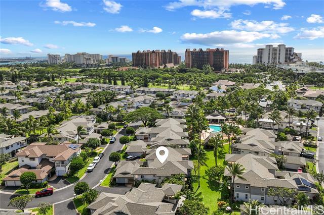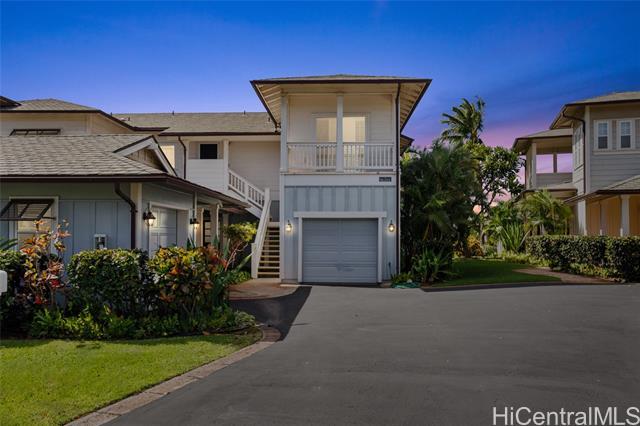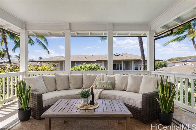 Nestled beneath swaying coconut palms, this beautifully renovated town home blends contemporary comfort with easy island living. Thoughtfully redesigned with upscale finishes in kitchen and bathrooms, the home showcases a polished aesthetic and careful attention to detail throughout. The flexible layout also offers a versatile third room that opens to a bright, spacious living area filled with natural light, creating an inviting setting for everyday living and entertaining. Step out to your private lanai and unwind to calming views of a breezy greenbelt and glimmering pool, perfect for seamless indoor-outdoor enjoyment. Located in a desirable gated community, you’re only minutes to the iconic Ko Olina lagoons. Enjoy resort-style amenities right nearby, including celebrated dining, upscale boutiques, golf, tennis, and miles of scenic walking paths. Lush tropical landscaping frames the neighborhood with a sense of privacy and serenity. Whether you’re searching for a full-time home or an elevated getaway, Coconut Plantation offers a refined retreat in one of O‘ahu’s most sought-after resort destinations.