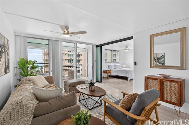 Rarely available high-floor with ocean view residence at the classic Makee ‘Ailana! Enjoy sweeping views of the Pacific Ocean, Kapi‘olani Park, and Diamond Head from this coveted East Waikiki address just a block from world-famous beaches and surf breaks. This spacious 2 bedroom, 2 bath, 1 covered parking features a desirable double-en-suite layout with large bedrooms, walk-in closets, and a generous lanai perfect for entertaining, morning coffee, or sunset cocktails. Ready for your personal touch and a little TLC, this location with parking this close to the beach is your perfect home in paradise. Makee ‘Ailana is a well-managed, pet-friendly community (dogs up to 22 lbs) with a friendly, boutique feel (only 4 units per floor) and 90-day minimum rentals allowed.