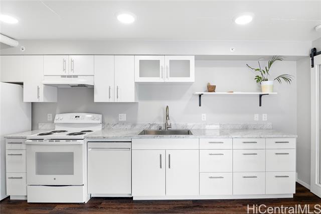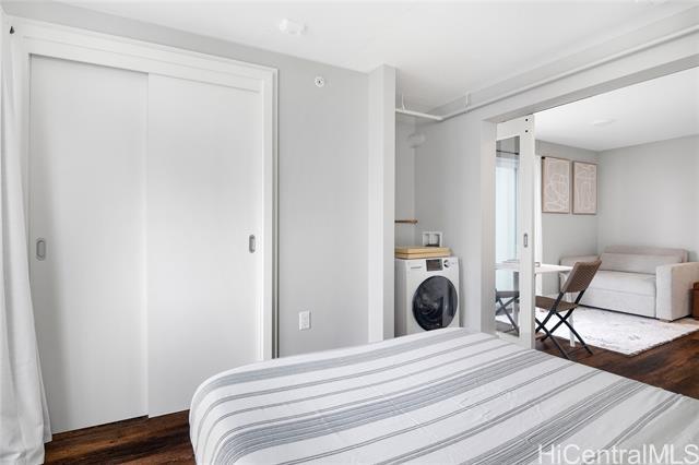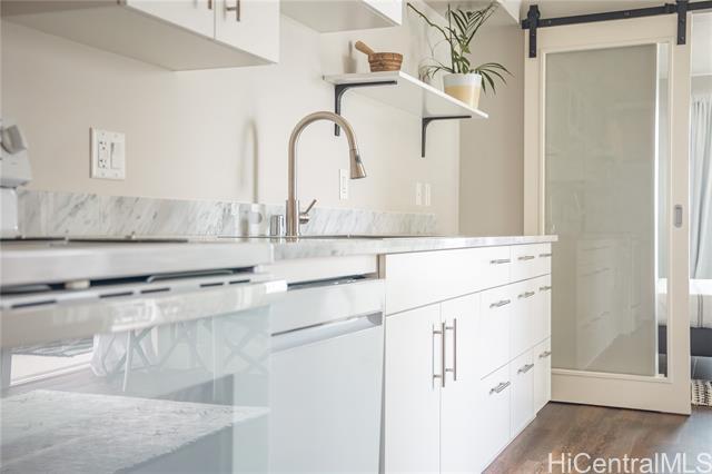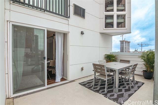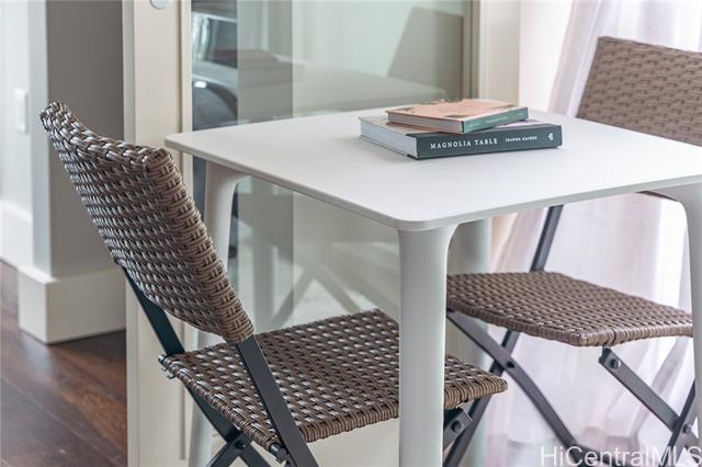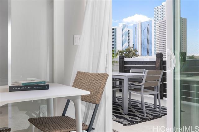 Welcome to 803 Waimanu, Unit 512, completed in 2021, offering a boutique living experience in the heart of Kaka'ako. One of the standout features of this unit is the large private lanai, providing a beautiful overlook of Kaka'ako along with a peekaboo ocean view—an ideal spot for relaxation. Parking is included for your convenience. Additionally, this building is fully insured, providing peace of mind as you embark on your new living journey. This immaculate, fully furnished unit is equipped with top-of-the-line GE appliances, including a convenient 2-in-1 washer/dryer, modern dishwasher, sleek stove and oven combination, handy garbage disposal, and spacious refrigerator and freezer. Enjoy luxurious Carrara marble countertops and elegant vinyl wood flooring, which seamlessly combine style and functionality for a truly exceptional living space. Don’t miss the opportunity to make 803 Waimanu your new home!