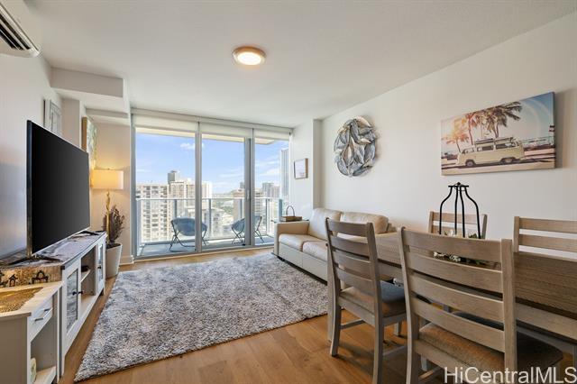 Experience elevated island living in this beautifully appointed 1-bedroom residence featuring elegant hardwood flooring and offered fully furnished for immediate enjoyment. Ideally situated at Azure Ala Moana, the home is moments from world-class shopping, dining, and everyday conveniences at Ala Moana Center. Residents enjoy resort-style amenities including a pool, whirlpool spa, fitness center, theater, party room, BBQ areas, and guest suites for visiting friends and guests. The spacious lanai invites you to relax and take in ocean, mountain, and city views — perfect for morning coffee, sunset unwinding, and sparkling evening lights. An exceptional opportunity to own in one of Honolulu’s most desirable urban locations.