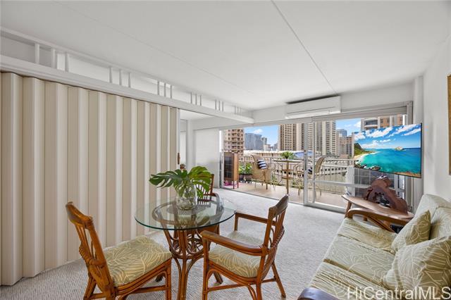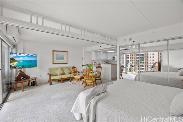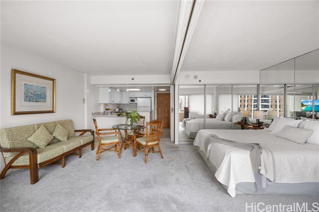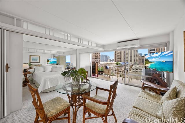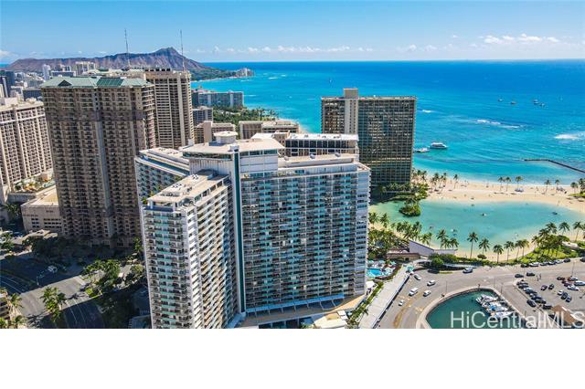 Rare Opportunity at the Iconic Ilikai – Legal Vacation Rental! Enjoy the Hilton Friday night fireworks every week from your private lanai! This well-maintained, fully furnished 8th-floor lagoon-view 1-bedroom, 1-bath unit overlooks the Ilikai pools and Hilton Lagoon. Positioned on a mid-level floor, it strikes the perfect balance—avoiding lower-floor noise while staying clear of the stronger winds often found on higher levels. Bright morning sunlight fills the unit, creating a warm and inviting atmosphere without the intense afternoon heat of the opposite side of the building. The turnkey ~500 sq. ft. space is ideal for owner use, a second home, or short-term rental investment, with monthly storage available for rent. The Ilikai features two on-site restaurants (lobby and rooftop), two pools, valet service, 24-hour security, and a world-class open-air lobby. Just steps from Waikiki Beach, Hilton Lagoon, Ala Moana Center, dining, shopping, and nightlife, with convenient trolley and TheBus stops right in front of the building, this 8th-floor gem combines strong rental potential with timeless Waikiki charm.