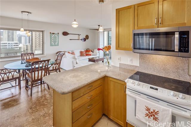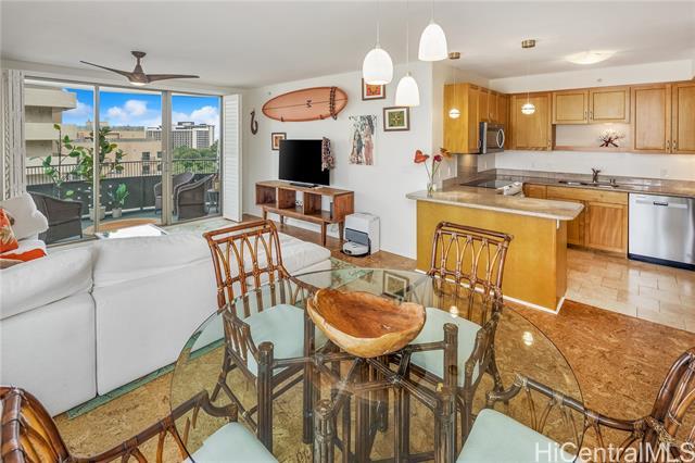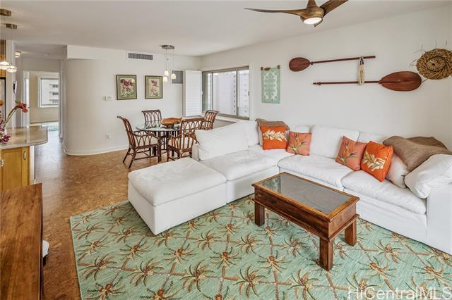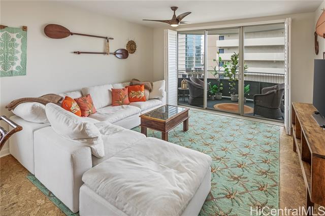 Welcome to Lanikea at Waikiki, a boutique luxury condominium, perfectly situated in the heart of Waikiki. This spacious 2-bedroom, 2-bath unit offers the ideal blend of comfort, privacy, & island living. High ceilings, generous windows, and an open floor plan create a bright airy atmosphere throughout the home. The modern kitchen features quality finishes and ample storage, flowing seamlessly into the living and dining areas, perfect for relaxing and entertaining. Both bedrooms are well-appointed, with the primary suite offering a walk-in closet and an ensuite bathroom for added convenience. A private lanai extends your living space outdoors, providing a peaceful spot to enjoy your morning coffee or unwind after a day in the sun. Lanikea at Waikiki Beach is known for its serene, resort style amenities, including a beautifully landscaped pool area, hot tub, secure entry, & an onsite manager. With only four units per floor, resident enjoy enhanced privacy, & a quiet living room environment. Located just moments from Waikiki Beach, world class shopping, dining, and entertainment, this residence offers the best of island living with the comfort of a well-maintained, upscale community.