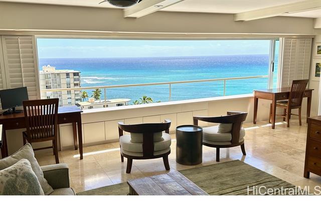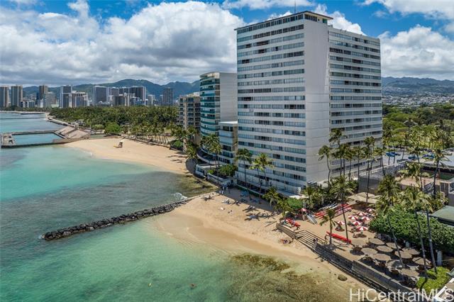 FULL PHOTOS & VIDEO COMING SOON. Oceanfront living at Colony Surf on Oahu’s prestigious Gold Coast. Rarely available high floor corner end one bedroom, one bath with sweeping ocean and Diamond Head views. Renovated residence features travertine floors, mirrored wall with ocean views, recessed lighting, coffered ceiling, granite and quartz countertops, stainless steel Bosch appliances, GE gas range, new washer and dryer, two ceiling fans, quality shutters, newer windows, extra closet space, and removal of the original popcorn ceiling. Colony Surf offers a refined marble lobby, secure entry, and is home to Michel’s at Colony Surf. Step directly onto a premier sandy swimming and surfing beach, with the Outrigger Canoe Club and Kaimana Beach nearby. Across the street, enjoy Kapiolani Park’s 300 acres of walking paths, tennis, pickleball, exercise areas, and picnic grounds. One parking stall assigned by building. Maintenance fee includes electricity, cable, internet, gas, water, and sewer. FULL PHOTOS & VIDEO COMING SOON.