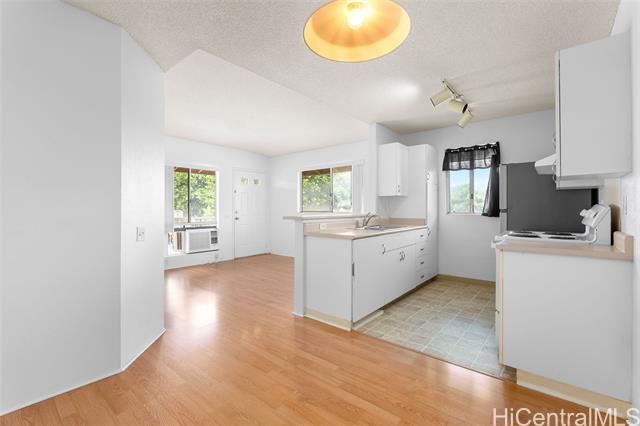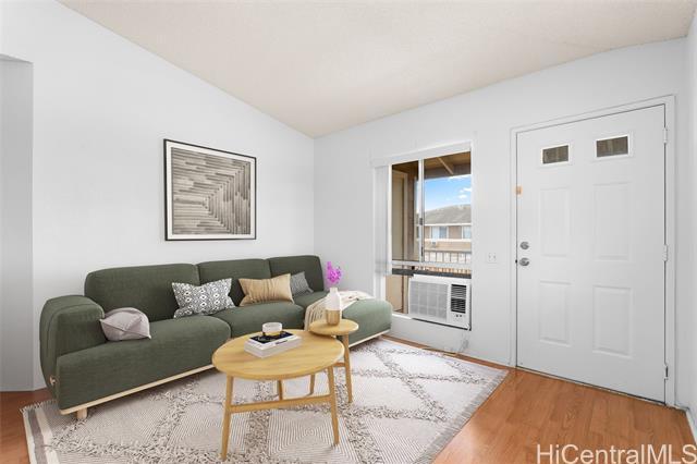 Bright and airy 2-bedroom, 1-bath upstairs townhome in Suncrest, Ewa Beach! This unit is filled with natural light and features vinyl flooring in the living area, private lanai, window AC units, and washer/dryer in the unit for added convenience. Includes two parking stalls (one covered, one uncovered). Move-in ready while offering the opportunity to add your own personal touches—priced to reflect the value. Located in a pet-friendly complex conveniently near shopping, restaurants, and everyday essentials. Enjoy living in the Ewa by Gentry community with nearby parks and recreation areas, just minutes from Ka Makana Ali'i Shopping Center, golf courses, and beautiful beaches. Great starter home or investment opportunity. A few photos have been virtually staged(enhanced).