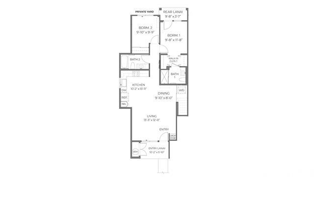 This single ground level 2 bedroom, 2 bath end unit condominium flat consists of 921 square feet of net living area. Step in from the covered entry lanai and enter the open concept living room and kitchen. Past the kitchen is the primary bedroom that includes a walk-in closet, ensuite bathroom with a vanity sink, water closet, step-in shower, and a rear lanai for relaxing and taking in the fresh air. Next door, the secondary bedroom includes a generously sized closet with mirrored sliding doors. Split air conditioning and modern appliances including a range/oven, micro-hood, dishwasher, refrigerator, and washer/dryer allow for ease of living.