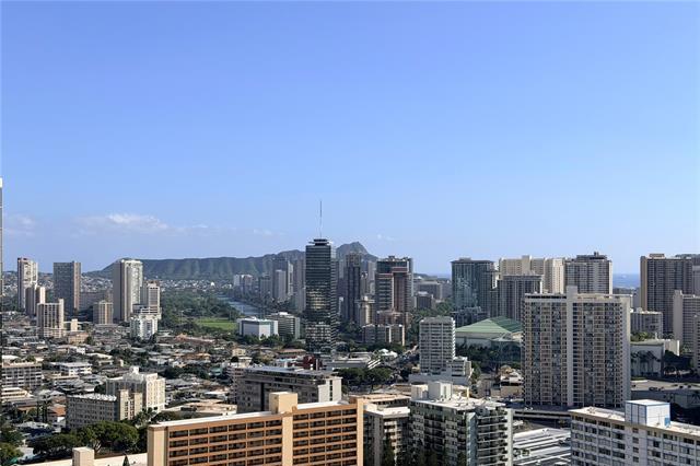 Experience a modern island living in this new, high-floor 1-bedroom residence. This preferred floor plan is thoughtfully designed - features expansive floor-to-ceiling windows that frame breathtaking, panoramic views Diamond Head, mountain, and City views. Wake up to golden sunrises from your private 92-sqft lanai. Open-concept layout with durable luxury vinyl plank flooring and a quiet, energy-efficient split AC system for year-round comfort. Kitchen features sleek quartz countertops, contemporary hardware, modern plumbing fixtures, and premium stainless-steel appliances. Bedroom is carpeted and the bathroom equipped with quartz counters and a designer LED medicine cabinet. Enhance your lifestyle with an expansive half-acre amenity deck: Infinity pool and spa with a sprawling sun deck. State-of-the-art fitness center, sauna, and dedicated yoga room, private movie theater, and sophisticated co-working spaces/club rooms. Multiple BBQ pavilions for private outdoor entertaining. Pet-friendly features including a dedicated dog park. 24/7 security, secured covered parking, bike storage, and EV charging stations.