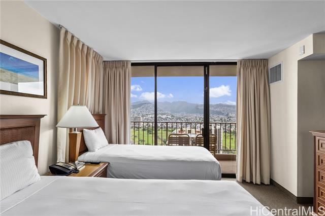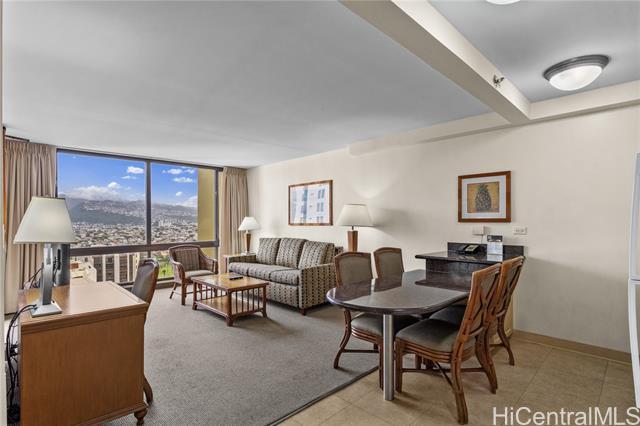 Embrace the spirit of island living with this legal short-term vacation rental at Waikiki Sunset. This high-floor corner residence on the 31st floor is a fully furnished 1-bedroom, 1-bath unit featuring a private lanai, 1 unassigned parking stall, and part of the Aston Waikiki hotel rental pool. A Non-Conforming Use Certificate (NUC) held by Aston provides the rare flexibility for daily or weekly rentals which is ideal for both personal enjoyment and income potential. The unit has a fully equipped kitchen, breathtaking mountain and golf course views, in-unit fire sprinklers, upgraded door locks, and a recently replaced A/C fan coil. Enjoy the gentle trade winds, an occasional rainbow in a relaxed island ambiance from your lanai. Resort-style amenities include a pool, gym, and BBQ/recreation deck with stunning views of Diamond Head, perfect for evening gatherings. Additional amenities include a sauna, hospitality lounge, conference room, on-site mini mart, and 24-hour security. Upcoming improvements to the sauna and pool deck will enhance long-term value. Waikiki Sunset is just moments from beaches, the Honolulu Zoo, Kapiolani Park, and Waikiki’s vibrant dining and shopping scene.