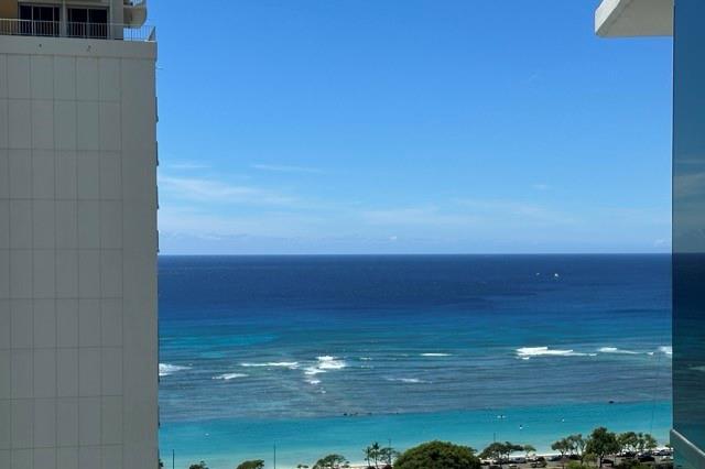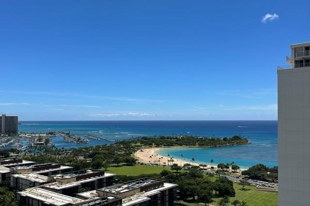 Recent Price Adjustment! Exceptional value for this highly coveted end unit with panoramic ocean views. Enjoy the beauty and splendor of Honolulu from sunrise to sunset with sweeping views of Diamond Head, Magic Island and Ala Moana beach park. Steps from Ala Moana Shopping Center and Foodland Farms, multiple restaurants and minutes from Kakaako, Honolulu Academy of Arts and The Neal Blaisdell Concert Hall this unit is in a prime location in the hub of Honolulu. Walking distance to Ala Moana Beach Park buyer can enjoy beach life without having to worry about traffic or parking. Amenities include newly renovated pool, multiple BBQ areas, tennis court/pickle ball, putting green, playground, and beautifully landscaped walking paths. The main bedroom has walk-in closet as well as a sliding door second closet. Unit has 2 covered/assigned parking stalls with multiple storage areas. Priced to allow buyer to add their own decorative touch, unit has not been renovated. The sale is based on "AS IS" condition. Seller is motivated.