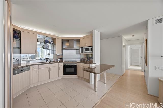 Stunning ocean and city views from every room. This two-bedroom, two-bathroom unit is located in one of the premier locations in Honolulu. The property is situated directly across the street from Ala Moana Shopping Center and is in close proximity to Ala Moana Beach Park, as well as numerous shops and restaurants in Ward Village and Kaka’ako. Building amenities include a swimming pool, BBQ areas, a tennis court, a playground and more.