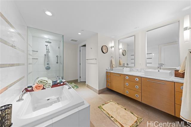 Exceptional opportunity in one of Honolulu’s premier luxury residences. This spacious, impeccably upgraded home showcases a refined open layout and plush carpeting throughout. The gourmet kitchen is beautifully appointed with quartz countertops and a full suite of Sub-Zero and Bosch appliances, including a gas cooktop, wall oven, drawer microwave, and dishwasher. Designed for elevated island living, the bright interior flows seamlessly, capturing cooling trade winds and inviting views. Includes two highly desirable side-by-side parking stalls. Enjoy resort-caliber amenities, including a heated saltwater pool, whirlpool spa, tennis courts, putting green, BBQ areas, dog park, and an impressive selection of indoor spaces: party room, meeting and conference rooms, theater, billiards lounge, guest suite, and car wash area. Pet-friendly and fully hurricane insured. Ideally positioned moments from Ala Moana Beach Park, world-class shopping, fine dining, theaters, Foodland, Whole Foods, and more. Elevated luxury, prime location, and an unmatched lifestyle—this is Honolulu living at its finest.