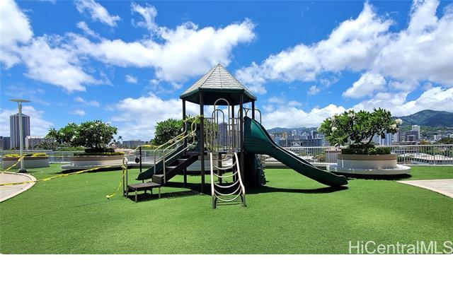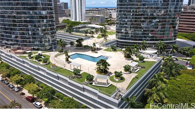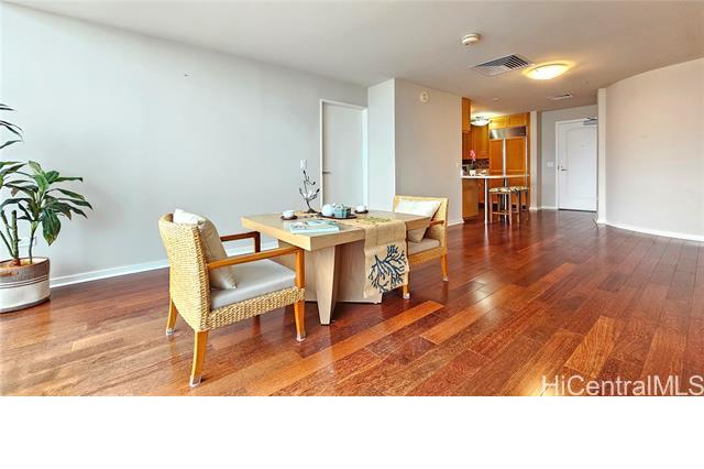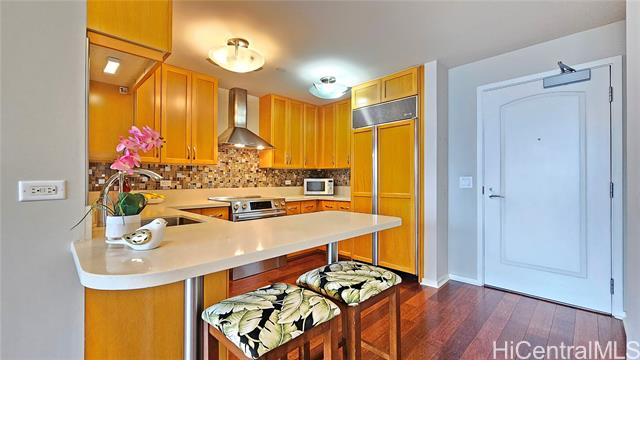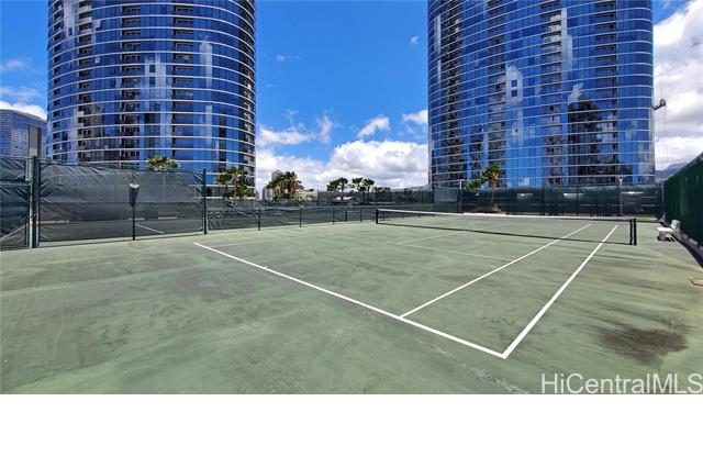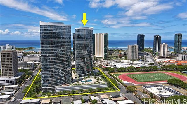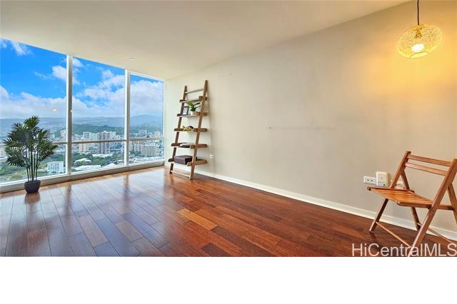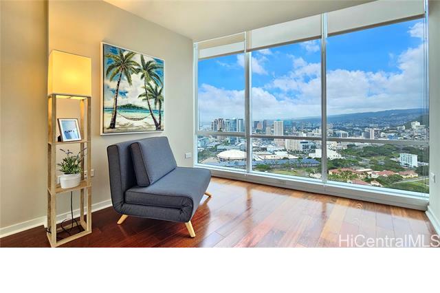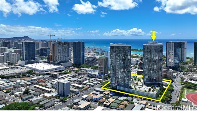 Real penthouse - no unit above! This 2-bedroom, 2-bath, 2-parking penthouse unit features extra-high ceilings and the floor-to-ceiling glass windows that offers beautiful mountain, city, and Honolulu Harbor views without strong afternoon sun! The seller seldom used the central AC. Small, but nice to have some open lanai for fresh air and to enjoy those lovely views. The two tandem parking stalls are spacious and conveniently located near the elevators. Beautiful Engineered hardwood floors throughout. Enjoy an array of amenities, including BBQ area, exercise room, large pool, theater, kids' playground, tennis/pickleball court, putting green, 24-hour security, and more. Moana Pacific is pet-friendly and has 100% hurricane insurance coverage. Residents and the staff are very welcoming and friendly. The location is exceptionally convenient - close to the world-famous Ala Moana Center, Ala Moana Beach Park and the beach, H-1 On/Off ramps, and Ward Village (Whole Foods, movie theaters and restaurants). Enjoy the breathtaking views from your home on the 48th floor!