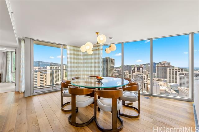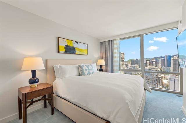 This is a rare opportunity to own a high-floor Grand Residences corner unit at The Ritz-Carlton Residences, Waikiki Beach. This thoughtfully designed three-bedroom, three-bathroom residence offers sweeping views of the ocean, mountains, park, and city. Another highlight of the property is the expansive 250-square-foot lanai, which is accessible from both the living room and primary bedroom. The unit comes fully furnished and includes high-quality linens, kitchenware, upscale appliances, marble finishes, and in-room laundry. While currently used as a vacation home, the property offers the potential to generate year-round income through the hotel rental program. Residents can enjoy world-class resort amenities, including two pools, a spa, fine dining, a bar, concierge services, and valet parking. Located just steps away from luxury shopping and dining, this property offers an unparalleled level of luxury and hospitality.