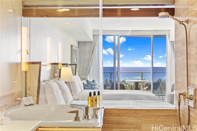 Wake up to breathtaking ocean views in this newly renovated, fully furnished studio at The Ritz-Carlton Waikiki. Designed for luxury and comfort, it features sleek marble flooring, high-end appliances, and a spa-like bathroom with a deep Japanese soaking tub, perfect for relaxation. Step onto your private lanai to enjoy stunning views of the ocean, sunsets, parks, and city lights. Enjoy world-class amenities, including twin infinity pools with private cabanas, a fitness center, yoga studio, full-service spa, and 24-hour concierge and valet services. Savor exceptional dining at Dean & Deluca, Quiora, Sushi Sho, and La Vie, or explore Luxury Row, fine restaurants, and Waikiki’s famous beaches—all just steps away. This unit is part of the hotel rental pool, offering both personal use and short term rental options. The renovation package has been fully paid by the seller. Experience the best of Waikiki in this turnkey luxury retreat.