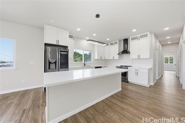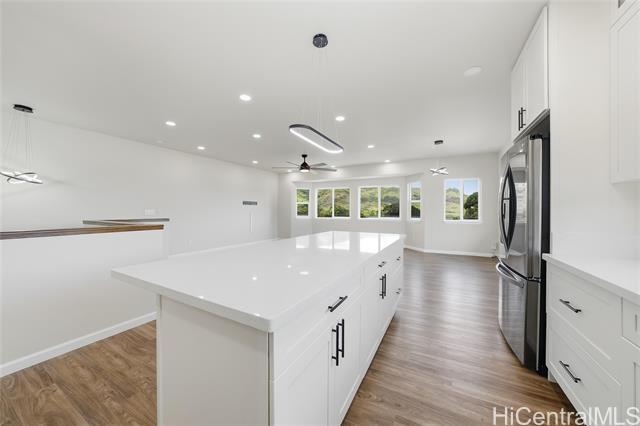 Discover modern island living in this spacious multi-generational home, thoughtfully designed and completed in 2021. Located in the highly regarded Kukanono neighborhood, this two-story residence offers both comfort and functionality with double-wall construction, quality finishes, and refreshing trade winds that flow throughout. The ground level is perfect for extended living or guests, featuring two bedrooms, walk-in closet, a full bath, wet bar, and luxury vinyl flooring under soaring 8-foot ceilings. Upstairs, the main living area boasts three bedrooms, two walk-in closets, white quartz countertops, washer/dryer, and 9-foot ceilings that create an open, airy feel. Energy efficienct with a 5-zone split AC system, solar water heater, and EV charger. A private backyard and two-car garage add to the home’s appeal. Ideally located near Adventist Health Castle with easy access to Pali Highway, Downtown Honolulu, and Kaneohe, this home also puts you minutes from Kailua’s world-class beaches, dining, and boutique shops. This is more than a home—it’s a place to create lasting memories in one of O'ahu's most sought-after communities. *VA Assumable at 4.25% for qualified VA buyers!*