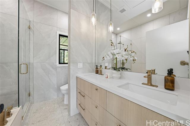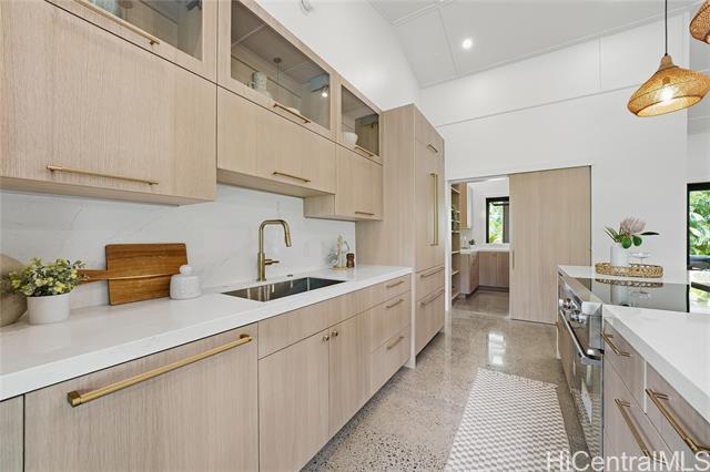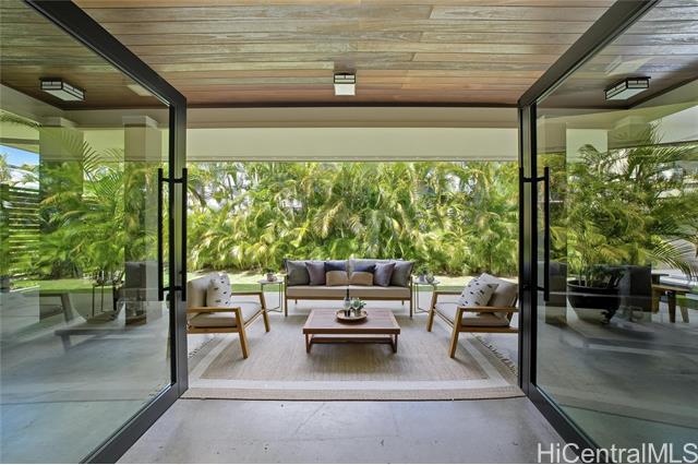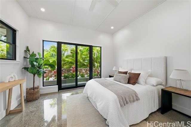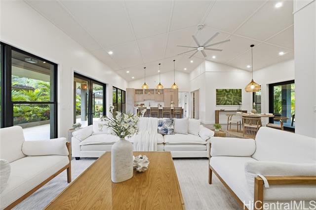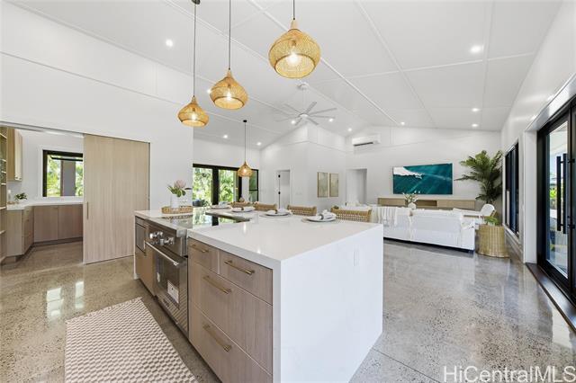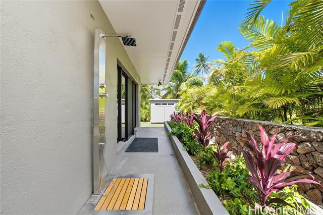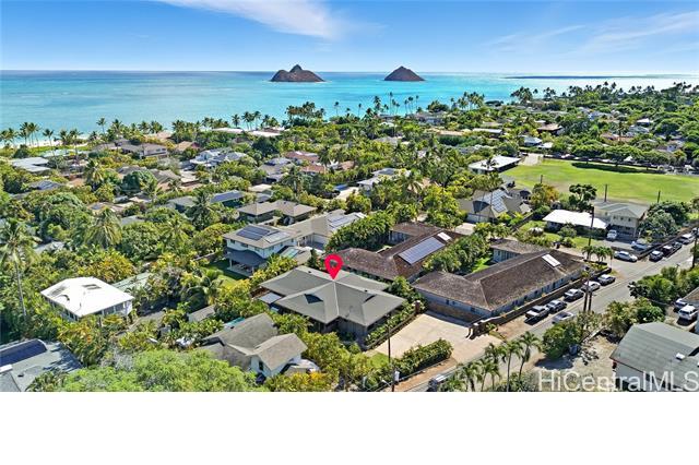 The Perfect Beach House in Lanikai! Just one block from world-renowned Lanikai Beach and steps from the popular Pillbox Hike, offering breathtaking views of the Mokulua Islands. This is your opportunity to embrace the ultimate beach lifestyle. Fully remodeled in 2025, this stunning home is constructed entirely of concrete, combining exceptional durability with modern design. Soaring ceilings, an open floor plan, and expansive covered lanais seamlessly extend the living space, creating a perfect harmony of indoor and outdoor living. Walls of windows throughout the home fill each room with natural light and welcome the cooling trade winds, ensuring year-round comfort without the need for air conditioning. Each of the three spacious bedrooms is ensuite, providing both comfort and privacy, and there's an additional full bath/laundry room for added convenience. Move-in ready and beautifully appointed, this home is your gateway to living in paradise.