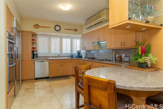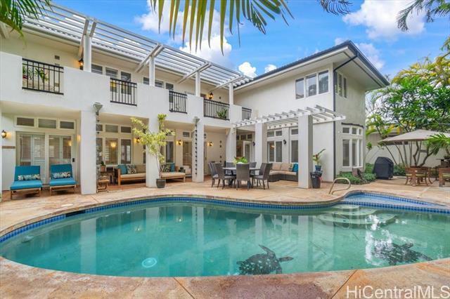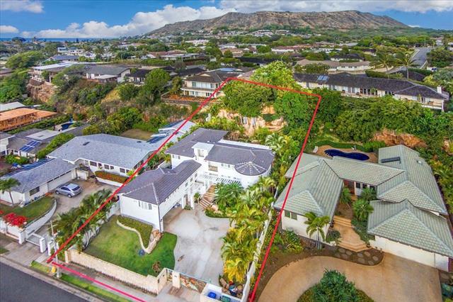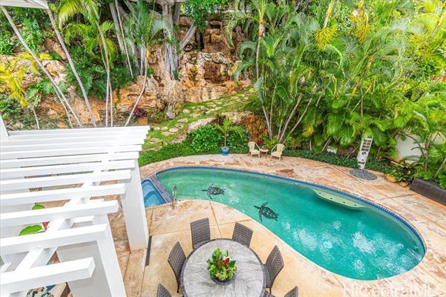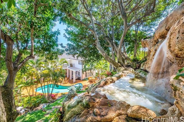 Nestled on a quieter street in one of the most sought after neighborhood in Honolulu, this Kahala mini oasis awaits you. Gated and private, this multi-level, spacious, upgraded home is perfect for a growing number of occupants. Inviting kitchen and free flowing floor plan with two living rooms and dinning room open to the back yard indoor / outdoor living and perfect for entertaining. There are five bedrooms all located on the upper levels. There is an attached 1br/1ba guest room complete with a wet bar which is perfect for visiting guests. Relax around or in the pool and hot tub. The manmade cascading waterfall creates a tranquil ambiance, allowing your mind to unwind and your senses to rejuvenate. Amidst the lush greenery and soft rustle of leaves, the waterfalls' melody offers a perfect backdrop for moments of peace and reflection. The oversized two car garage offers extra storage space. A must see.