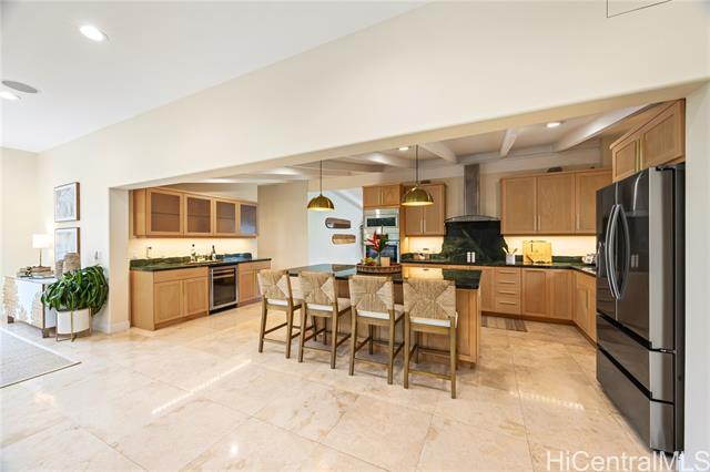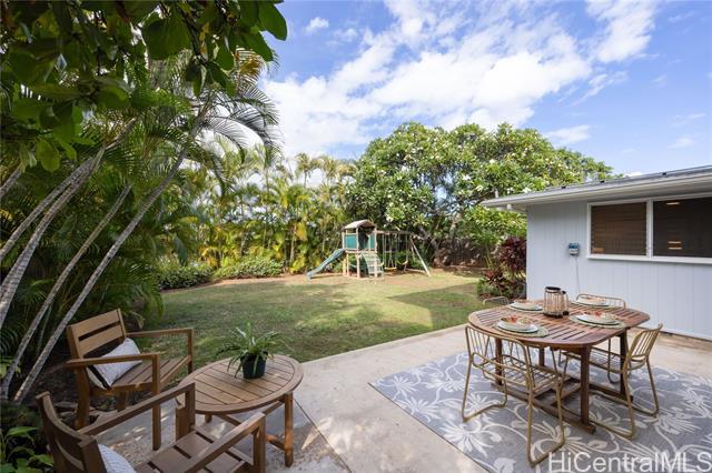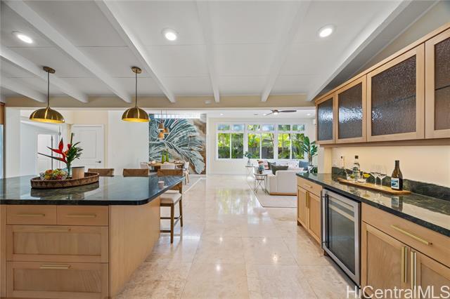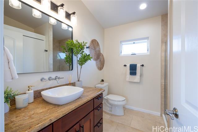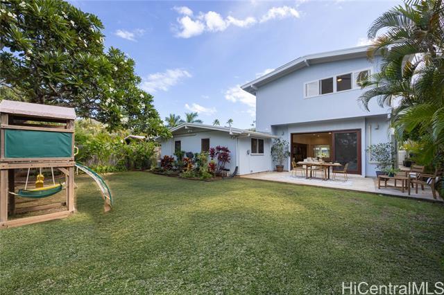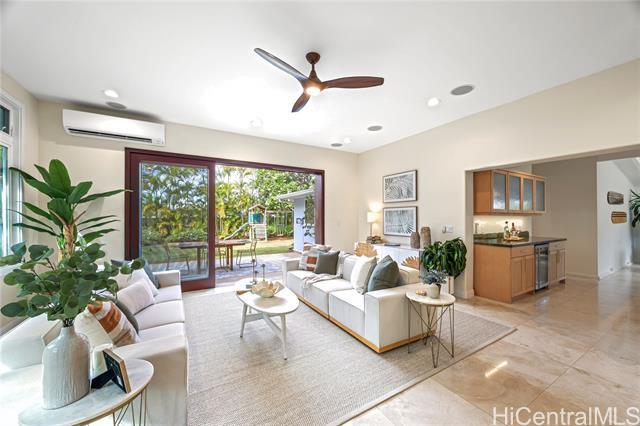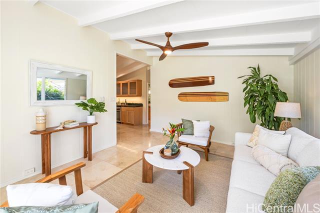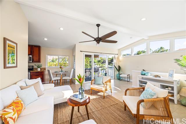 Coveted Country Club Knolls, just 8 houses from Kailua Beach Park. This beautifully updated home offers unmatched flexibility, modern upgrades, and an incredible beachside lifestyle. The main level features 4 bedrooms, 3 bathrooms, two generous living areas, and a refreshed chef’s-dream kitchen overlooking a spacious dining and living area. Oversized stacking doors open to a lush backyard, perfect for parties, play, or quiet relaxation. Designer touches, fresh paint, updated lighting, new flooring, and a bright, breezy layout create a peaceful, modern feel throughout. Vaulted ceilings, split ACs, & owned PV with Net Metering add long-term comfort and savings. Upstairs, a fully updated 1-bd/bth/liv/kitchenette w/ its own private entrance provides exceptional flexibility for multigenerational living, guests, or rental income. Live the ultimate Kailua lifestyle: stroll to Kailua Beach Park, Lanikai, Buzz’s, and Kalapawai, or launch your boat at the nearby ramp. With Ka‘ohao Charter School moments away and Mid-Pac Country Club a quick golf cart ride from home, this rare home blends comfort, location, and coastal living in one of Kailua’s most sought-after neighborhoods.