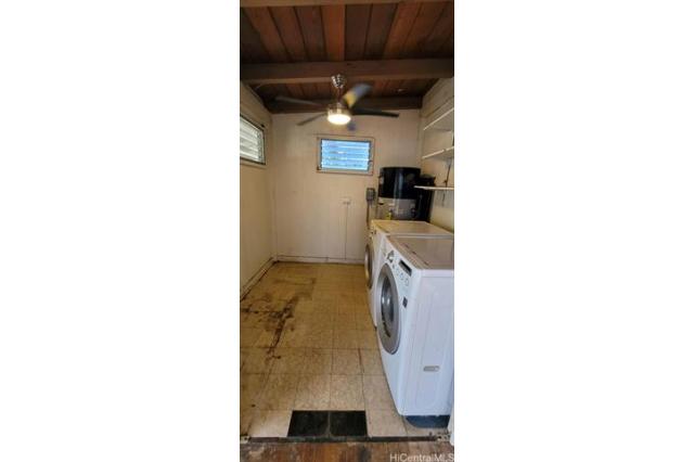 Unique opportunity to own a large lot on a great street in desirable Keolu Hills! Fenced with mature white pirie mango, orange, apple banana & puakenikeni trees. Renovate or rebuild this fixer to create your own paradise in Kailua! House has 2 split AC units & electric vehicle charger, family & laundry rooms. Electric & sewer line have been updated. AC & ceiling fans work, but are being sold As-Is along with the other appliances & fixtures on the property. No repairs to property or appliances will be made. Close to schools, dining options & Enchanted Lake Shopping Center.