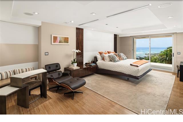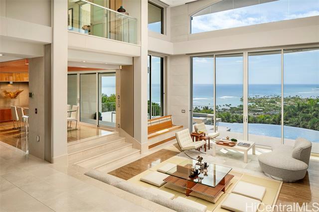 Situated on one of the most desired lots in Hawaii Loa Ridge, Kaimana Hila o?ers complete privacy and unobstructed views of Diamond Head, the Pacific Ocean, and Honolulu’s coast from nearly every room. Designed by award-winning architect Je? Long, this residence combines resilient steel-and-concrete construction with interiors crafted by artisans known for their work on ultra-luxury yachts and couture boutiques. Exquisite details like Spinneybeck Italian leather walls, custom closets by Molteni & C Dada, and vein-matched travertine marble bathrooms showcase luxury at every turn. At its heart, a Pininfarina-designed kitchen with Snaidero cabinetry and Gaggenau appliances elevates daily living and entertaining alike. Outside, an expansive lanai with a saltwater infinity pool and hot tub, framed by lush landscaping and breathtaking views, creates a resort-style sanctuary. German-engineered hurricane shutters, a professional security system, and a gated community with 24hr security make this a true lock-and-go residence—o?ering unmatched luxury and refinement in Honolulu.
