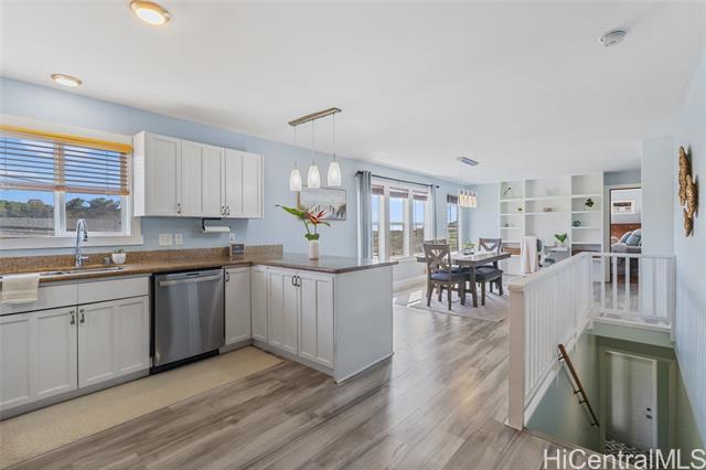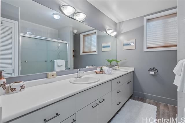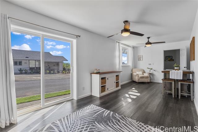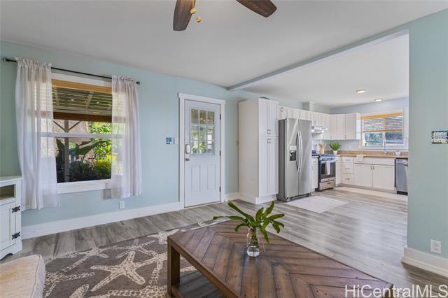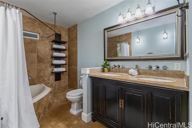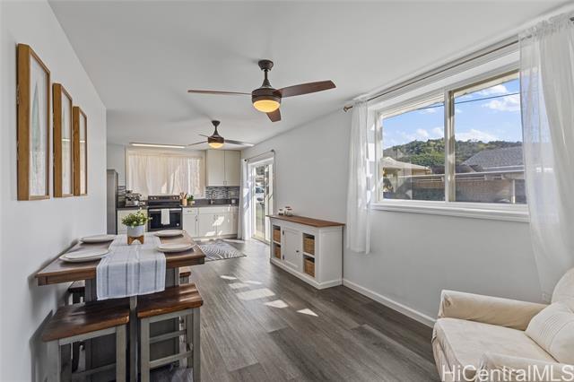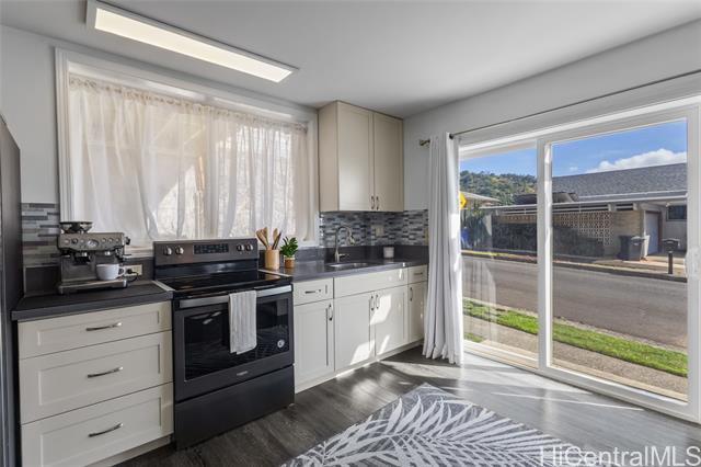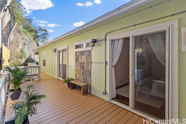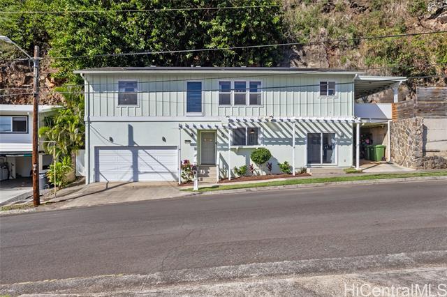 Rare beautifully maintained multi-generational opportunity in desirable Moanalua Valley! VA assumption to qualified buyers at 2.625% . This spacious 5-bedroom, 3-full-bath home features two distinct living areas a main space upstairs featuring 3-bedroom, 2-bath layout and downstairs 2-bedroom, 1-bath suite with wet bar. Can be used separately or together. Enjoy gorgeous mountain views with peek-a-boo ocean views and a primary suite with en suite bath. The home has nicely appointed quality finishes such as granite countertops, stainless steel appliances, luxury vinyl floors and hardwood. 1 Split A/C unit and 3 wall units and 13 OWNED solar panels and Tesla Powerwall. Step outside to a grassy yard perfect to garden with a covered lanai with mature lush tropical landscaping, creating a peaceful island oasis. Ideally located near Moanalua Valley Trail, Park, and Moanalua Valley Golf Club, with convenient freeway access, schools, and amenities. Approximately 3 miles to Fort Shafter and 6 miles to Joint Base Pearl Harbor-Hickam, 1.4 miles to Kaiser Moanalua Medical Center. A rare blend of convenience, flexibility, views, sustainability, and location