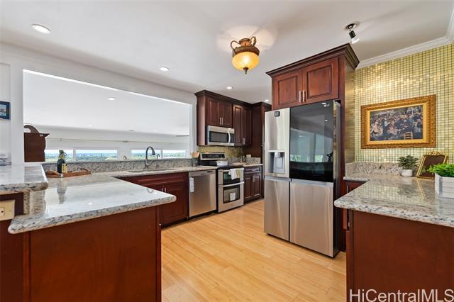 Breathtaking, unobstructed views of Diamond Head and the Pacific Ocean from this beautifully updated 4-bedroom, 6-bath single-family home located in the highly desirable Waialae Nui neighborhood. Boasting over 2,300 sq. ft. of interior living space, this residence features a thoughtfully designed layout with two primary suites, hard surface flooring throughout, and a bright, open-concept kitchen complete with granite countertops. Energy efficiency meets modern convenience with owned PV panels and a Tesla backup battery system. The flexible floor plan offers multigenerational living potential or an excellent opportunity for rental income. Conveniently located just minutes from Kahala Mall, local parks, beautiful beaches, and an array of shopping, dining, and entertainment options — this is island living at its finest.
