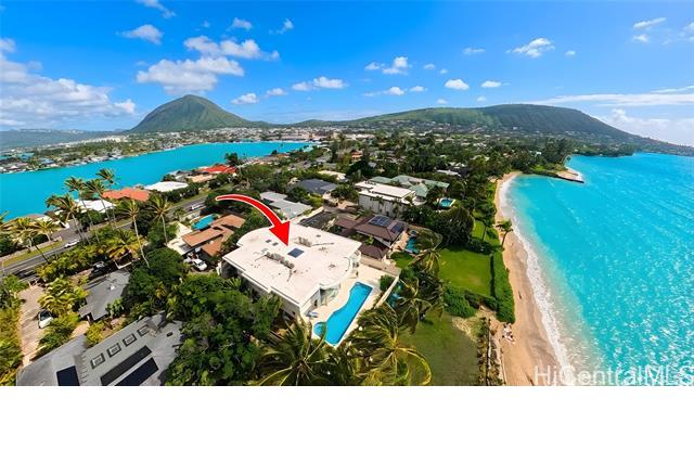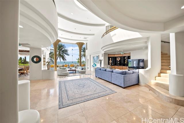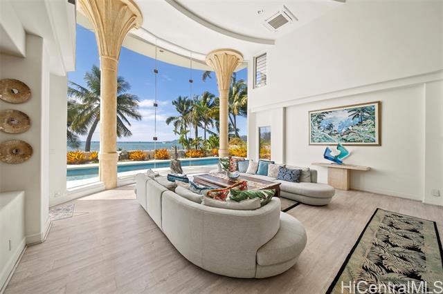 BEAUTIFUL OCEANFRONT and sandy beach residence located in the Portlock neighborhood of Hawaii Kai, offering a rare opportunity to own one of the few true beachfront homes currently available in this coveted coastal enclave. Designed by renowned architect Jeffrey Long, this concrete and steel home is positioned directly along the shoreline, providing an exceptional connection to the Pacific. Soaring ceilings, dramatic architectural elements, and expansive glass frame ocean, sunrise, and sunset views, while refined finishes and thoughtfully designed living spaces create a seamless balance of elegance and island living. Outdoor areas include a covered oceanfront patio and a tiled in-ground pool just steps from the sand, making this an exceptional Portlock offering.