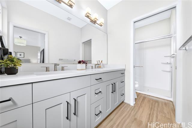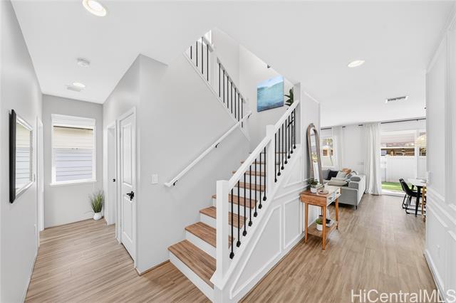 Welcome home to the coveted ‘Ailana (Plan 4) floor plan of Makamae by Gentry! Pride of ownership is evident as you are greeted by accent walls adorned with elegant moldings that set a refined tone throughout the home. Built in 2021, this home shines in pristine condition with 16-owned PV panels and a functional layout with a bedroom and bathroom on the first floor. Enjoy a gorgeous kitchen featuring ample cabinetry and a walk-in pantry perfect for everyday living and entertaining. Other modern comforts include but are not limited to central AC, luxury vinyl plank flooring, and a water softener system. Let's not forget about the backyard with spacious covered patio and concrete sidewalk. VA Assumable at 2.75%. Don't miss out on this wonderful opportunity!