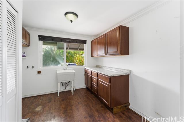 Welcome to this expansive 5-bedroom, 2-bathroom home offering 2,656 sq. ft. of living space on a generous 10.927 sq. ft. lot. Designed for flexibility and comfort, the property features a large carport with parking for approximately 6-8 vehicles, making it ideal for multi-generational living, entertaining, or hosting guest. Enjoy outdoor living with a private pool and ample yard space perfect for gatherings, relaxation, or future possibilities. Located in the heart of Aiea, you're just minutes from Pearlridge Center, with endless dining, shopping, and grocery options nearby, plus easy freeway access for commuting across O'ahu. This centrally located gem offers space, convenience, and lifestyle. Property is being sold in its current "As-is" condition. Number of bedrooms and bathrooms don't match tax records. Buyer to do their due diligence.