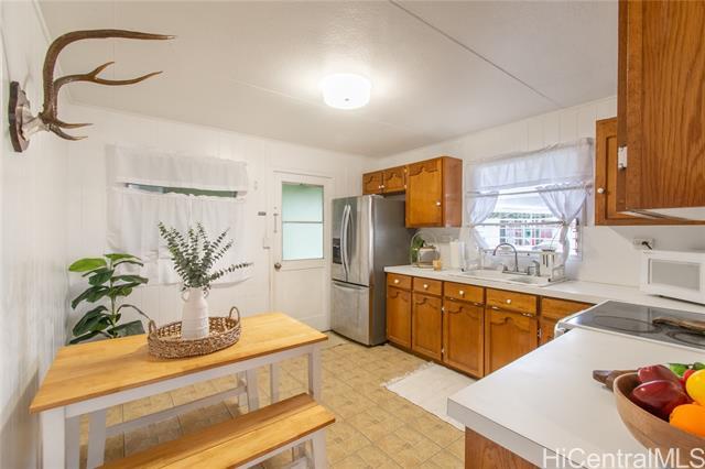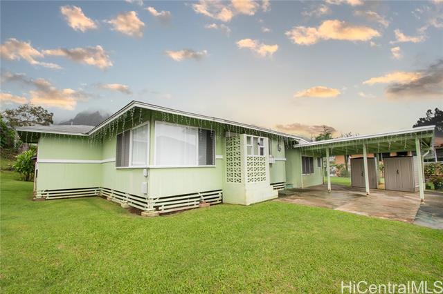 Rarely available opportunity in highly desirable Kaneohe, set against the stunning backdrop of the Ko'olau Mountains. This property offers a prime location at the end of a cul-de-sac with a strong neighborhood and exceptional potential. The main residence features 3 bedrooms and 1 bathroom with generous living spaces, providing a blank canvas for renovations and personalization. A fully remodeled ADU was completed in 2023 and includes 1 bedroom and 1 bathroom, along with new plumbing and new electrical, making it move-in ready. Major improvements completed in 2023 include a new roof, plumbing and new copper water lines. An excellent opportunity to customize the main home while immediately benefiting from the finished ADU for rental income, multigenerational living, or flexible use - all while enjoying beautiful mountain views and the Kaneohe life style.