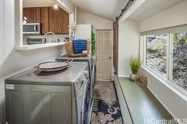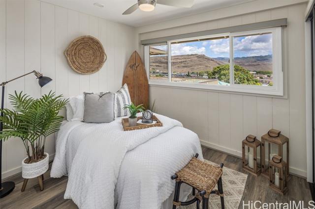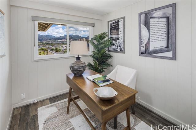 Gorgeous views can be enjoyed from every corner of this 4-bedroom, 2-bath Salt Lake home. The living room opens to an impressive, spacious deck, allowing wonderful indoor-outdoor living. Additional upgrades include new flooring, a remodeled kitchen, updated windows (farewell jalousies), an expanded living area, popcorn ceiling removal, and more. It also has a designated indoor laundry area and a workroom adjacent to the garage. This home is move-in ready! Situated on a 10,000 SF lot in a quiet cul-de-sac with R-5 zoning, the property offers both privacy and potential The location is extremely convenient: just 0.3 miles to Salt Lake Shopping Center, 1.8 miles to Daniel K. Inouye International Airport, 2.9 miles to Tripler Medical Center, and 6 miles to Downtown Honolulu. This home combines modern updates, outdoor space, and a location that makes daily life easier.